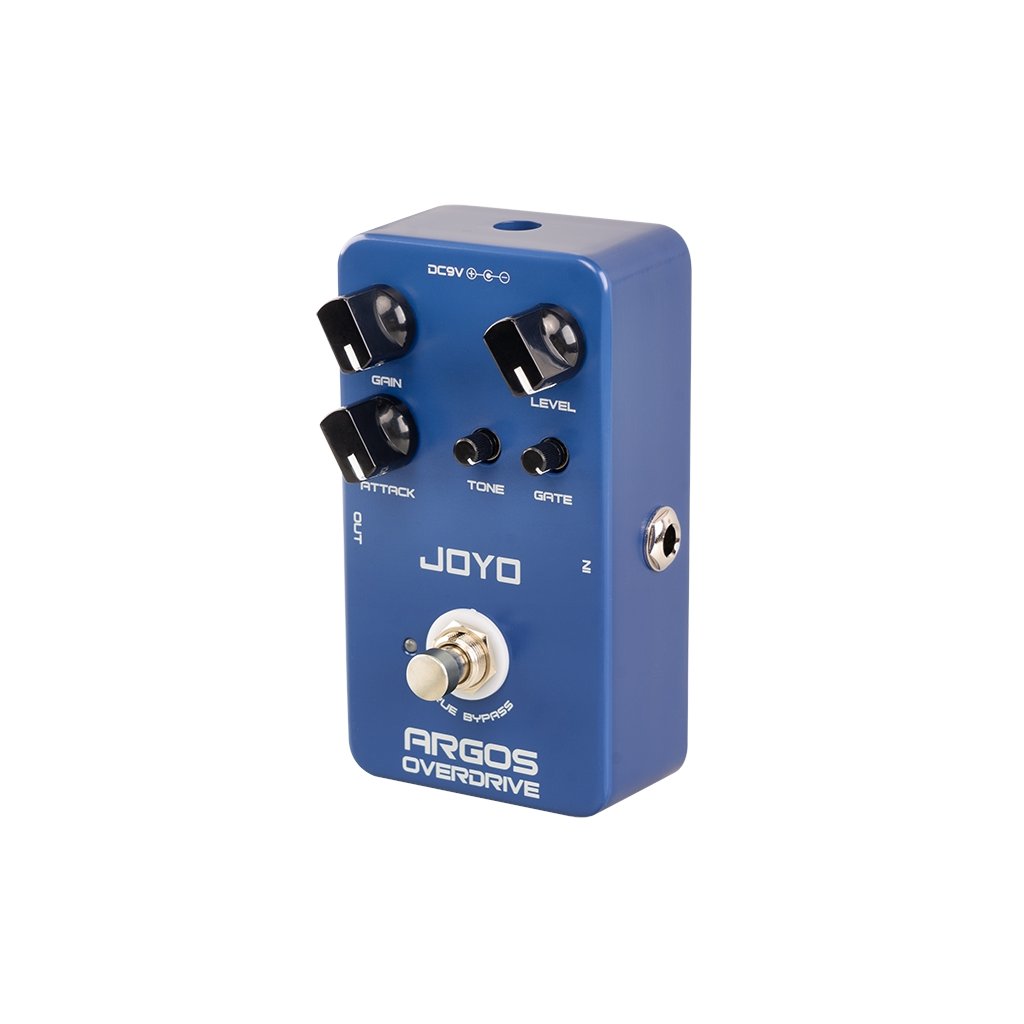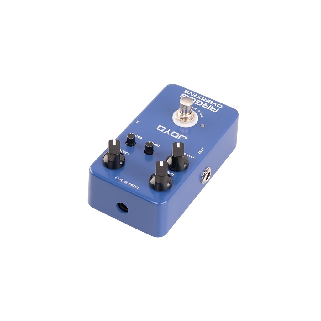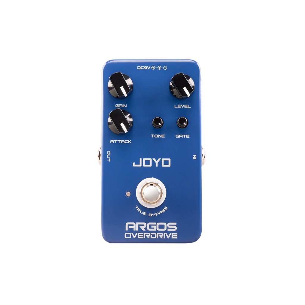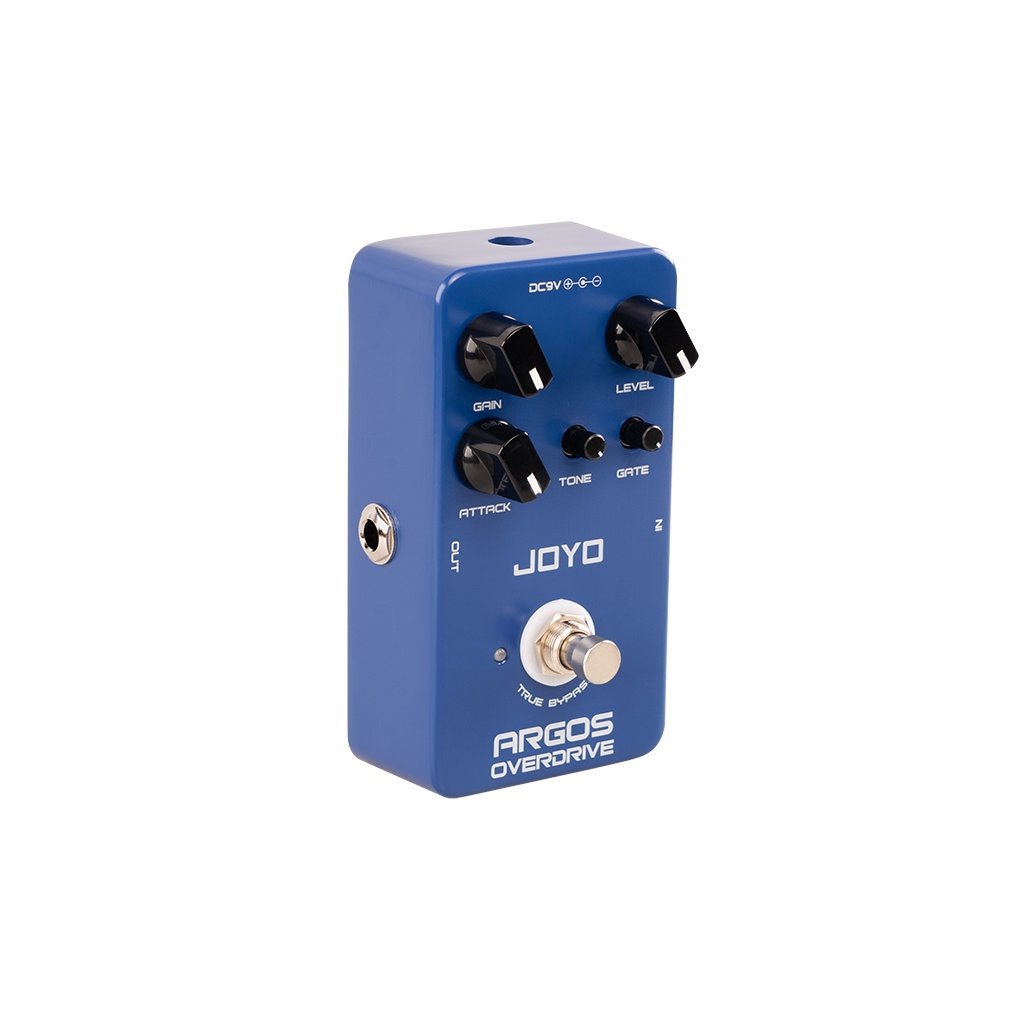 JF-23 ARGOS OVERDRIVE je overdrive efekt so šiestimi typmi OD obvodov, medzi ktorými si môžete vybrať pomocou ovládača Attack, a zabudovanou šumovou bránou. Tá jednoducho odfiltruje nepríjemný šum "dirt" pedálov - JF-23 je skôr rockový alebo metalový overdrive/distortion pedál so slušnou dávkou gainu, takže na otázku známeho gitaristu a youtubera "Bude to chrčať?" možno odpovedať jednoznačným "áno, pane!".