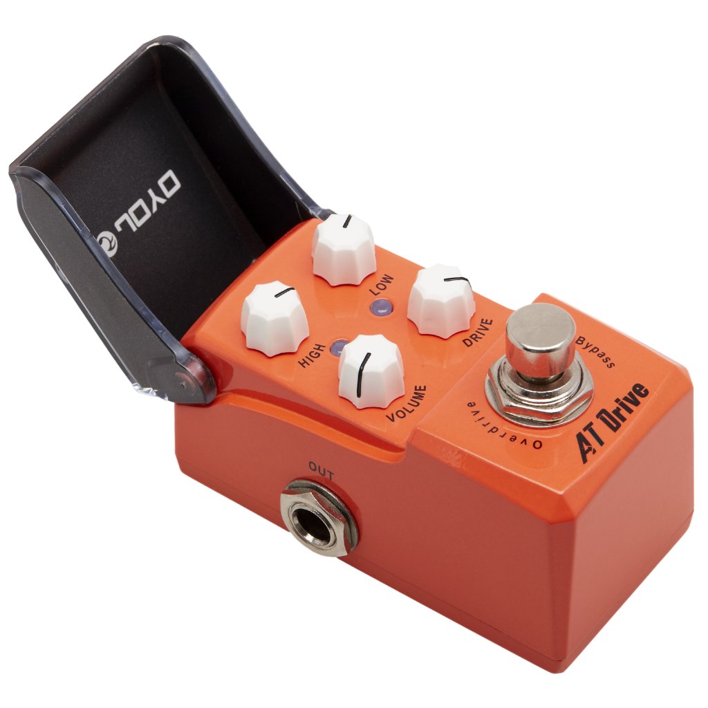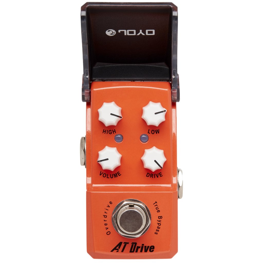 Joyo JF-305 AT Drive je gitarový efekt, ktorý vám poskytne príjemný bluesový/rockový overdrive, ktorý dodá vášmu gitarovému tónu viac plnosti. Zvuk je možné formovať pomocou potenciometrov hlasitosti, úrovne skreslenia a dvojpásmového EQ (výšky, basy). Krabička pracuje v režime true bypass, takže po vypnutí nijako neovplyvňuje priechodný signál. Na napájanie sa používa 9V adaptér.