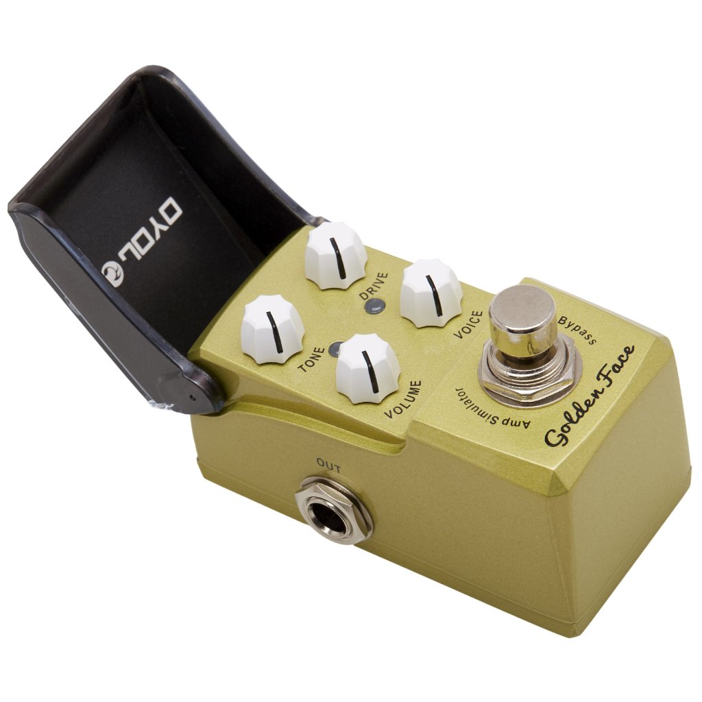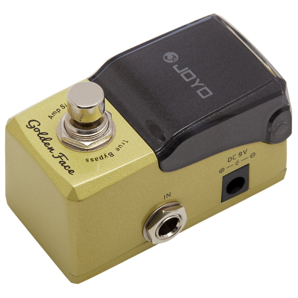 Joyo JF-308 Golden Face je kytarový efekt, který simuluje zvuk britských aparátů Marshall. Ovládání pomocí čtyř potenciometrů je zcela intuitivní. Krabičku můžete používat jak před aparátem, tak i zvuk poslat přímo do mixu či vašeho PC. Funguje v režimu true bypass, takže ve vypnutém stavu nijak neovlivňuje průchozí signál. K napájení slouží 9V adaptér.