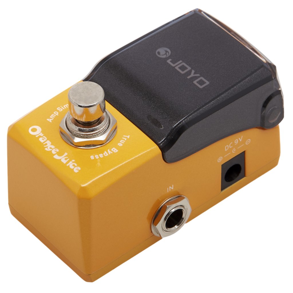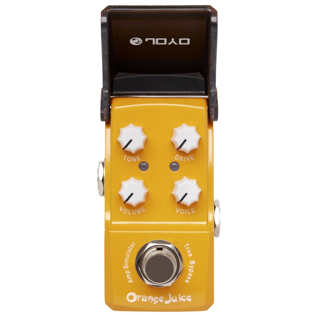 Joyo JF-310 Orange Juice je kytarový efekt, který simuluje šťavnatý zvuk britských aparátů Orange. Ovládání pomocí čtyř potenciometrů je zcela intuitivní. Krabičku můžete používat jak před aparátem, tak i zvuk poslat přímo do mixu či vašeho PC. Funguje v režimu true bypass, takže ve vypnutém stavu nijak neovlivňuje průchozí signál. K napájení slouží 9V adaptér.