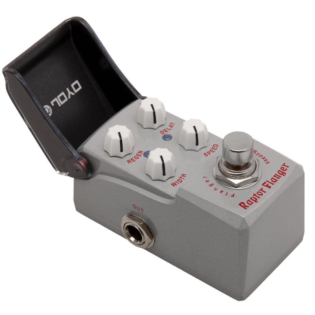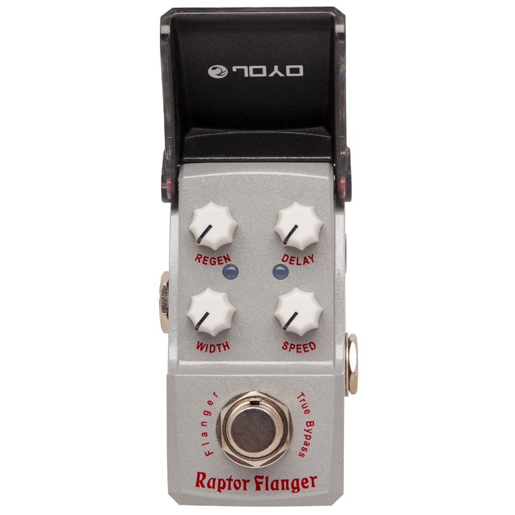 Joyo JF-327 Raptor Flanger je miniaturní modulační efektový pedál od značky Joyo, který vám poskytne bohatý zvuk flanger efektu s typicky kovovým zvukovým zabarvením. Čtyři potenciometry krabičky nabízí zcela intuitivní ovládání, snadno se tak zorientuje i naprostý začátečník. Pedál funguje v režimu true bypass, takže ve vypnutém stavu nijak neovlivňuje průchozí signál. K napájení slouží 9V adaptér.