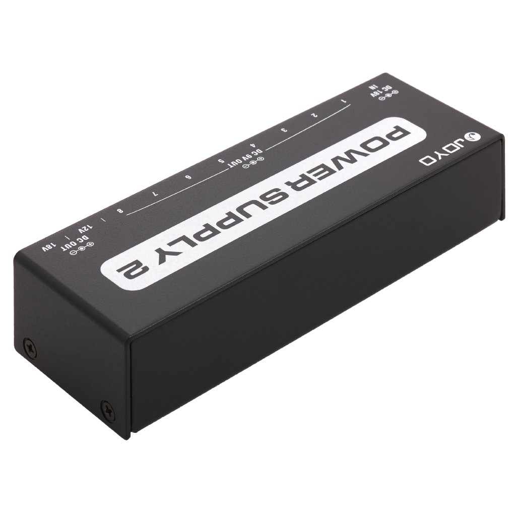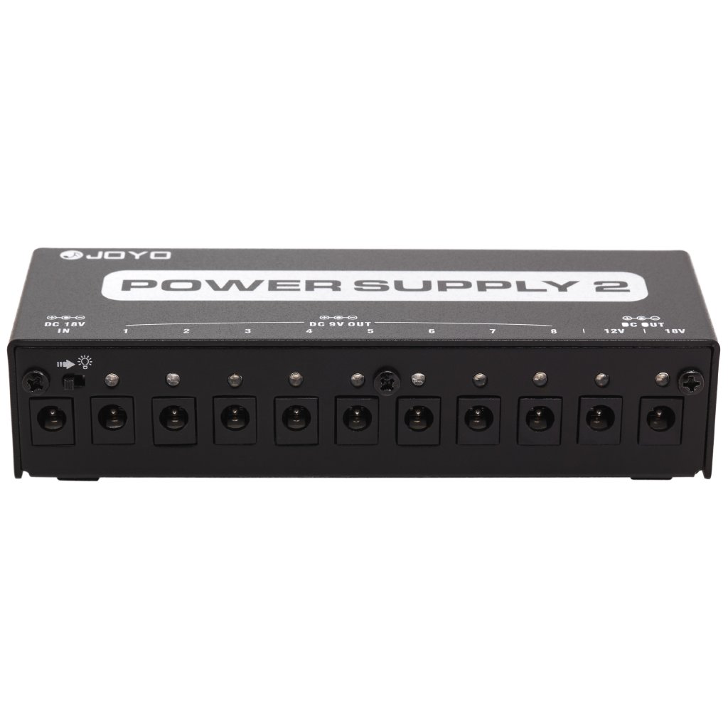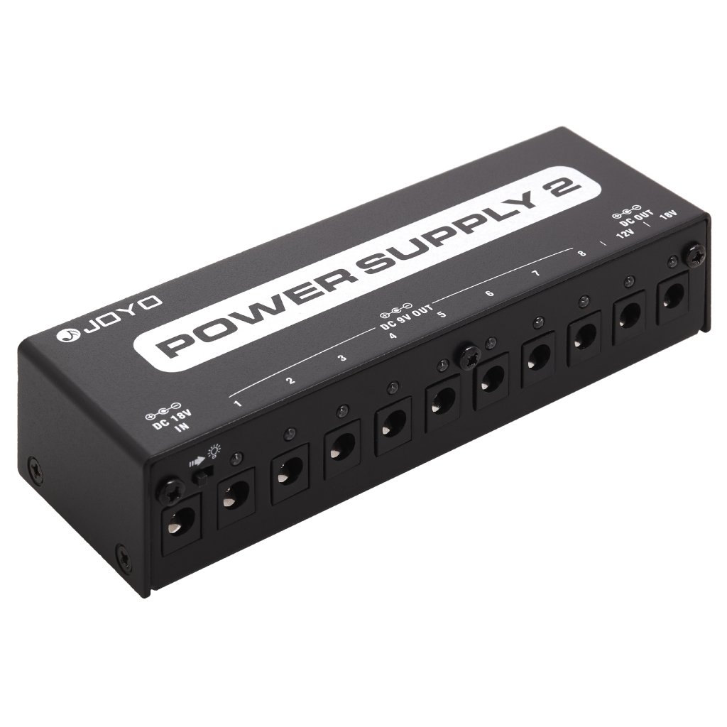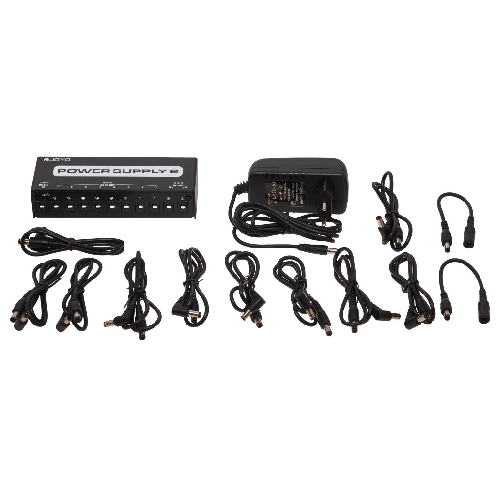 Multiadaptér Joyo JP-02 ponúka celkom 10 výstupov (7x 9 V DC 100 mA, 1x 9 V DC 500 mA, 1x 12 V DC 100 mA a 1x 18 V DC 100 mA). Má tiež LED indikáciu a ochranu proti skratu alebo prepätiu. Súčasťou dodávky je sieťový adaptér a potrebné pripojovacie káble.
