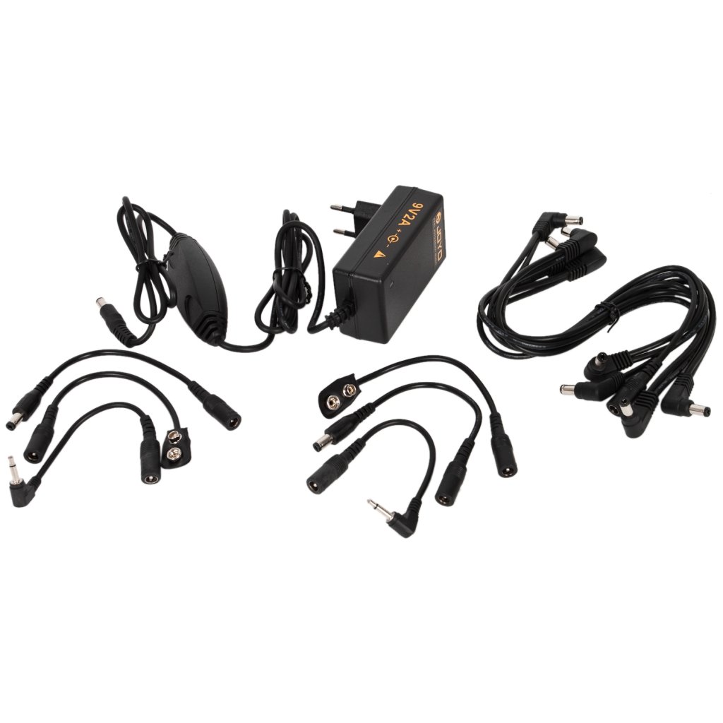 Joyo JP-03 je napájací adaptér so sadou prepojovacích káblov, ktorý poskytuje napájanie až ôsmim 9V zariadeniam (celkový maximálny odber energie je 2000 mA). Súčasťou balenia je reťazový prepoj s ôsmimi konektormi, dva káble na zmenu polarity, dve redukcie pre 3,5 mm konektor a dva káble na napájanie efektov, ktoré vyžadujú 9V batériu (napr. Line 6, RAT, EH pedále a ďalšie).