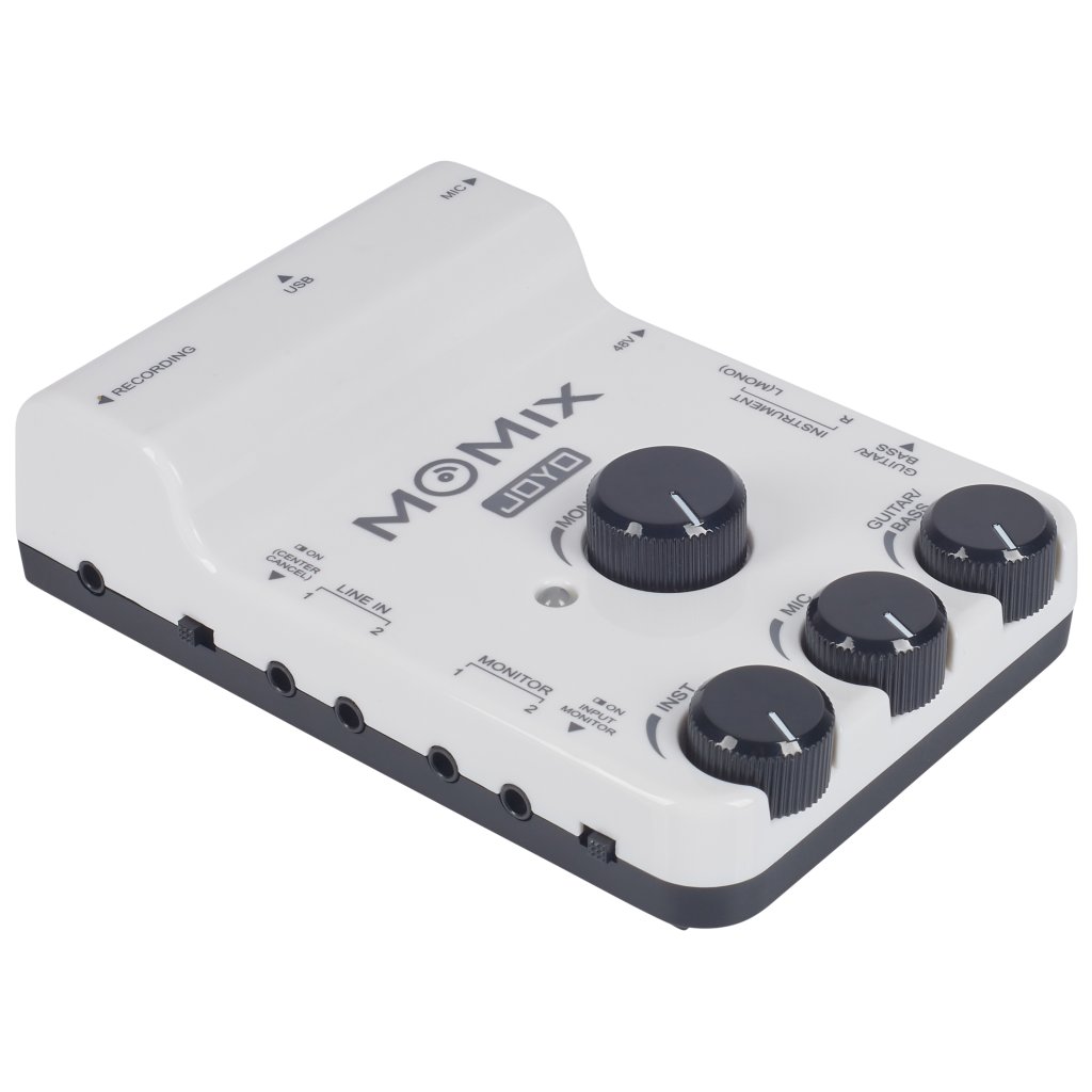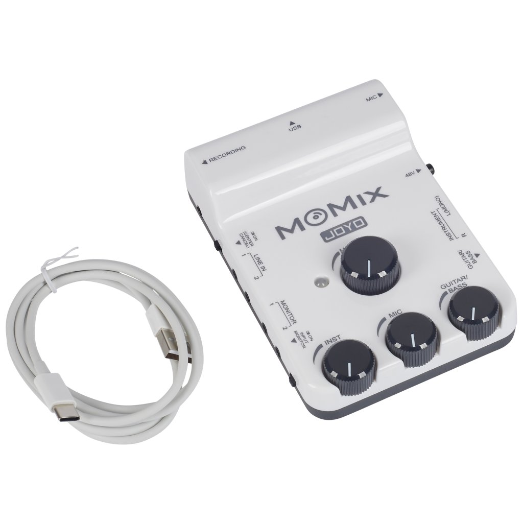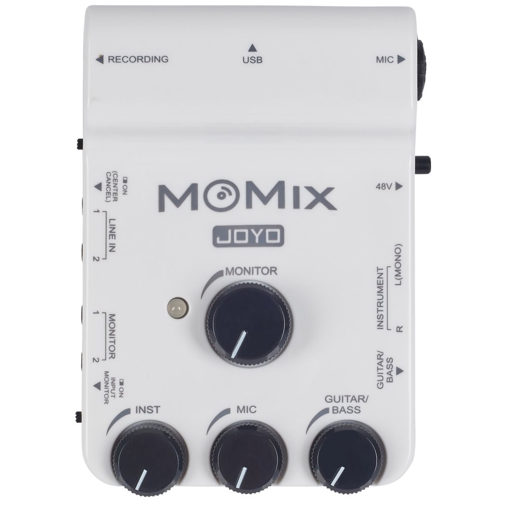 Univerzálny mixážny pult vhodný na nahrávanie alebo ozvučovanie akustických relácií a živých prenosov. Kompaktné šasi ponúka kombinovaný mikrofónový vstup s fantómovým napájaním, dva nástrojové a dva linkové vstupy. Podrobný monitoring potom zabezpečuje dvojica linkových výstupov pre štúdiové monitory a slúchadlá. Prehľadný ovládací panel ponúka štyri robustné ovládače hlasitosti pre vstupy a výstupy. Okrem toho môžete MOMIX pripojiť cez port USB k smartfónu, tabletu alebo notebooku a nahrať dve nahrávky do softvéru DAW alebo nahrávacích aplikácií.