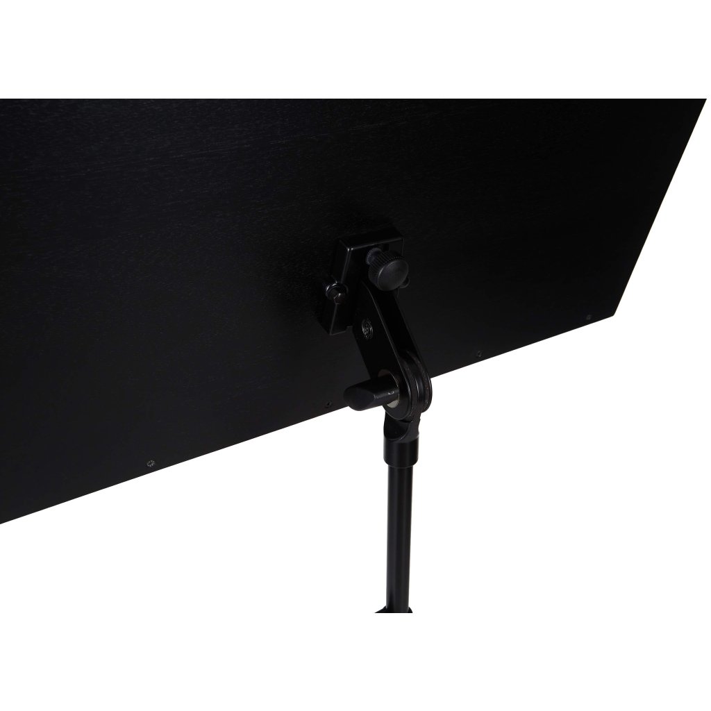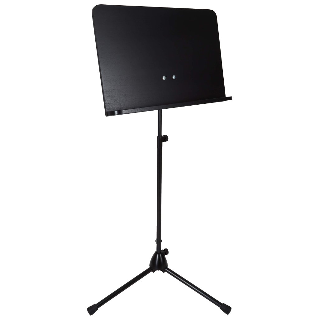 Orchestrálny notový stojan K&M ponúka robustnú dvojdielnu skladateľnú oceľovú konštrukciu so statívovou základňou s nastaviteľnou výškou do 1210 mm a drevený notový stojan s rozmermi 520 x 355 mm.
