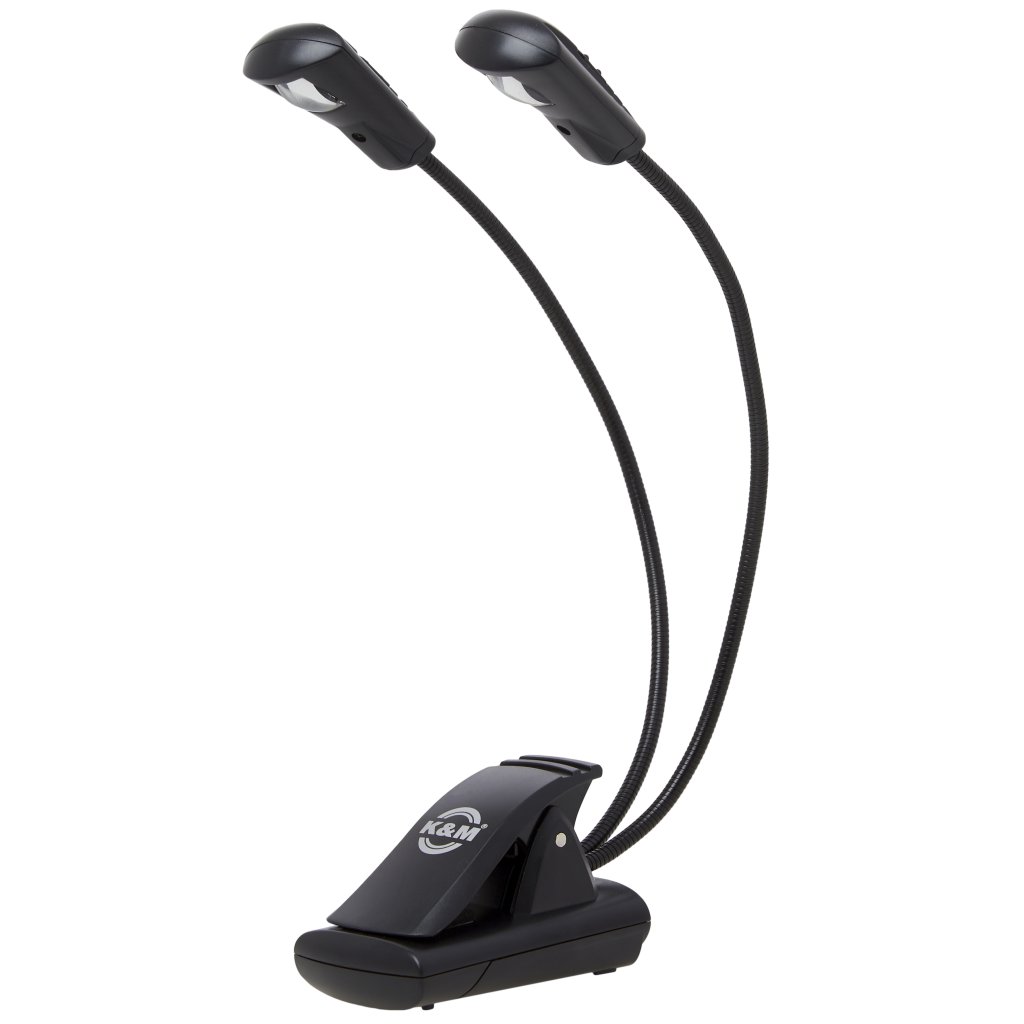 Univerzálna lampa na hudobný stojan s dvoma samostatnými LED svetlami, možnosť individuálneho prepínania. Životnosť LED je približne 100 000 hodín, flexibilitu nastavenia zaručuje husí krk, ako aj mimoriadne široký klip s rozpätím 25 mm. Svietidlo vďaka nemu môže stáť aj samostatne. Napájanie je zabezpečené tromi batériami AAA (cca 20 hodín prevádzky).