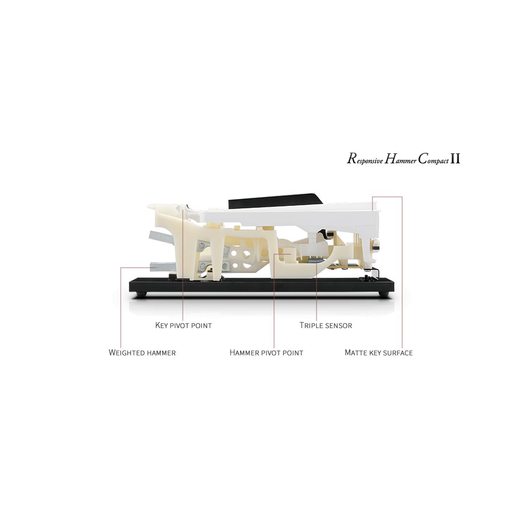 Kawai KDP120 je vysokokvalitné digitálne piano za prekvapivo prijateľnú cenu. Kawai KDP120 je vybavené klávesmi Responsive Hammer Compact II / RHCII / s trojitým senzorom na dosiahnutie realistickej hry. Pridaný tretí senzor zlepšuje citlivosť pri prehrávaní tej istej klapky a na rozdiel od technológie dvoch senzorov, ktorá sa nachádza v mnohých digitálnych piánach, umožňuje, aby zvuk jednej klapky bol postupne ,,vrstvený" bez toho, aby sa stratil predchadzajúci tón.