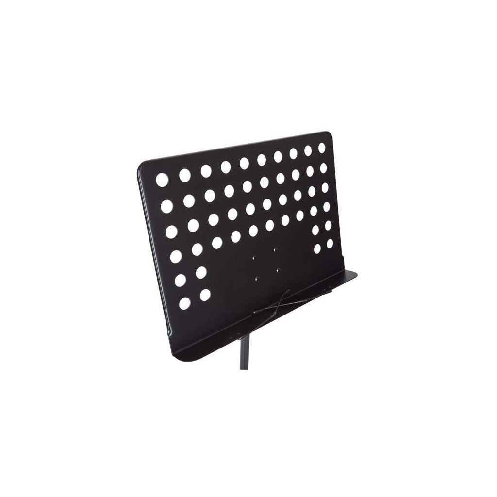 Stojan na noty Kinsman KSS02 ponúka pevný stojan na noty s rozmermi 48 x 34 cm, priehradkou hlbokou 5 cm a možnosťou nastavenia sklonu stojana, stabilnú skladacie trojnožku s pogumovanými nohami a dvojdielnou tyčou, ktorá umožňuje jednoduché nastavenie výšky.