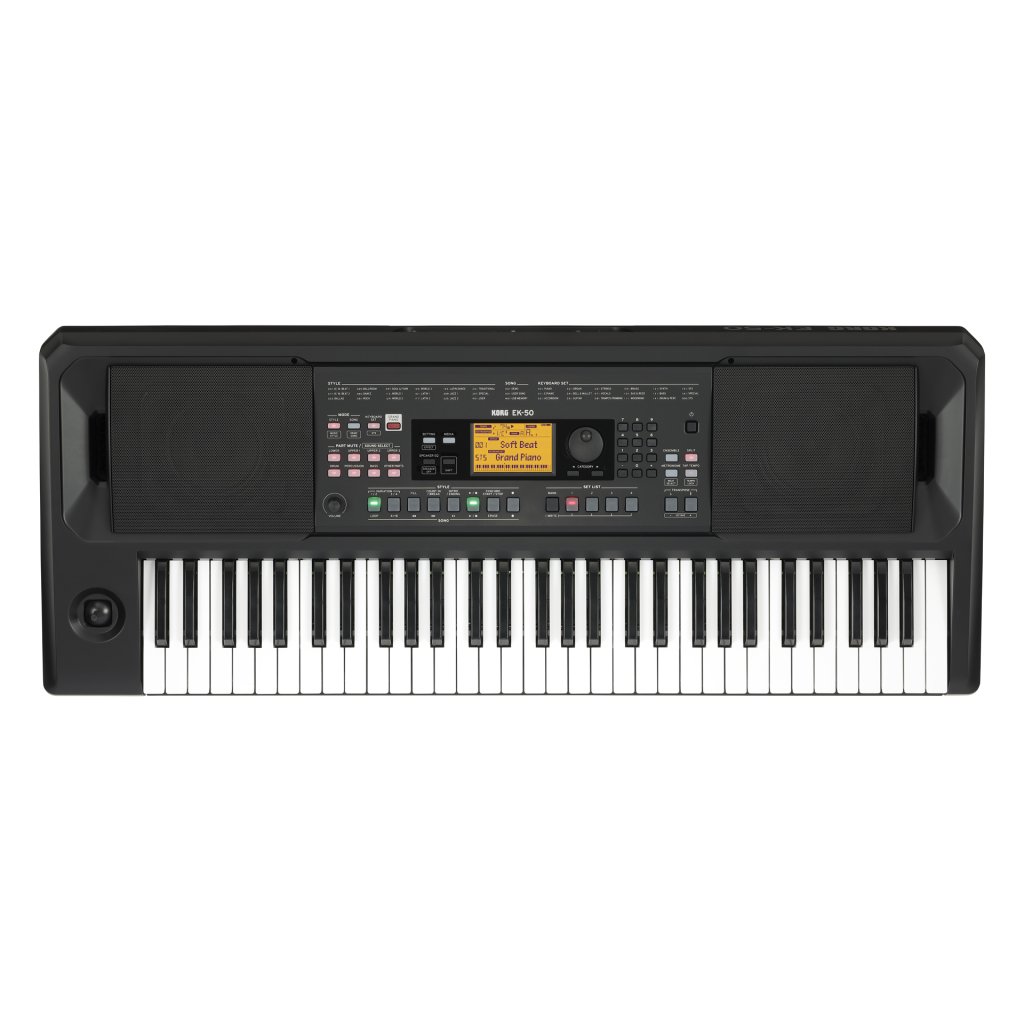 V nástroji sú vstavané výkonné stereo reproduktory 2 x 10 W. Reprodukujú nielen zvuk samotného nástroja, ale aj externého zariadenia pripojeného do vstupného jacku. Navyše je dodávaný stojan na noty a napájací adaptér, takže ste pripravení hrať ihneď po vybalení z krabice. EK-50 pracuje tiež na AA batérie (predávané samostatne), takže môžete hrať aj na cestách!