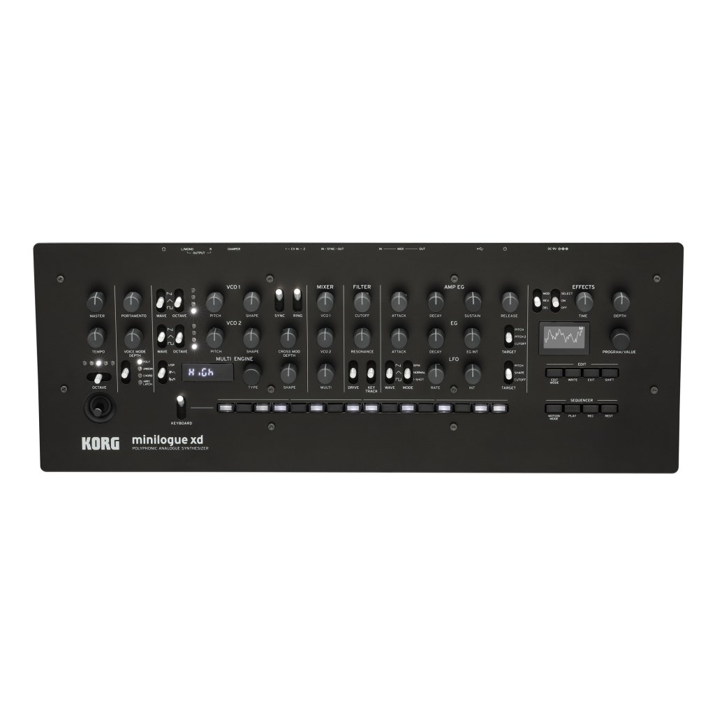 Stolový modul je vybavený tými istými ovládačmi ako klávesová verzia, takže je skvelou voľbou nielen ako prídavný zvukový modul pre vašu klaviatúru alebo DAW, ale má aj výbornú hrateľnosť a tento analógový polyfonický syntetizátor môžete ľahko začleniť do vášho zapojenia. Tiež je vybavený funkciou Poly-Chain, ktorá umožňuje pripojiť ďalší Minilogue XD alebo Minilogue XD module, pričom môžu tieto dva nástroje fungovať vo vašom štúdiu alebo na pódiu ako polyfonický syntetizátor spolu až s ôsmymi hlasmi.
