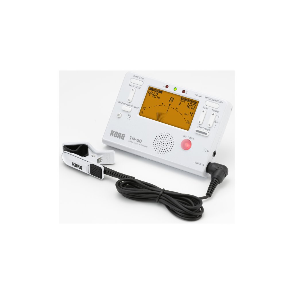 Najobľúbenejšia séria KORG TM, s ktorou môžete používať súčasne ladičku aj metronóm, sa dočkala vylepšenia. TM-60 je najnovší model s veľkým displejom, ktorý zobrazuje naraz ladičku s metronómom. Výrazným vylepšením prešla aj životnosť batérie. S úplne novým TM-60 si budete môcť užívať cvičenie intonácie a rytmu bez potreby prepínania funkcií alebo obmedzovania životnosťou batérií. Ladenie a trénovanie rytmu sú nevyhnutné pre cvičenie dychovej sekcie alebo orchestra. Navyše k tomu, že môžete používať naraz ladičku aj metronóm, má TM-60 displej približne 1,3-krát väčší ako predchádzajúci model (TM-50), čo umožňuje dobrú viditeľnosť aj keď je položený na vašom notovom stojane. Už viac nebudete prepínať medzi funkciami: budete môcť používať techniky cvičenia, ktoré sú osobité pre orchestrálne nástroje, ako je udržanie rovnakej výšky tónu pri dlhých notách, pričom meníte farbu pridaním vibráta do tempa, alebo kontrolujete ladenie akordov pri použití metronómu. Zväčšený displej je podsvietený, môžete nastaviť jeho jas v dvoch úrovniach soft alebo auto, čo zaistí bezstresové ladenie, aj keď ste na slabo osvetlenom pódiu alebo v orchestrálnej jame. Obvody boli navrhnuté tak, aby sa dosiahla životnosť batérie 130 hodín, čo je približne dvojnásobok predchádzajúceho modelu TM-50 (pri použití ladičky s vypnutým podsvietením). Nemusíte sa starať o životnosť batérií aj počas predĺžených skúšok alebo predstavení. Model TM60-C sa dodáva aj s praktickým klipom, ktorý je vhodný pre snímanie ladenia strunových, ale aj dychových nástrojov. Farebné prevedenie: White