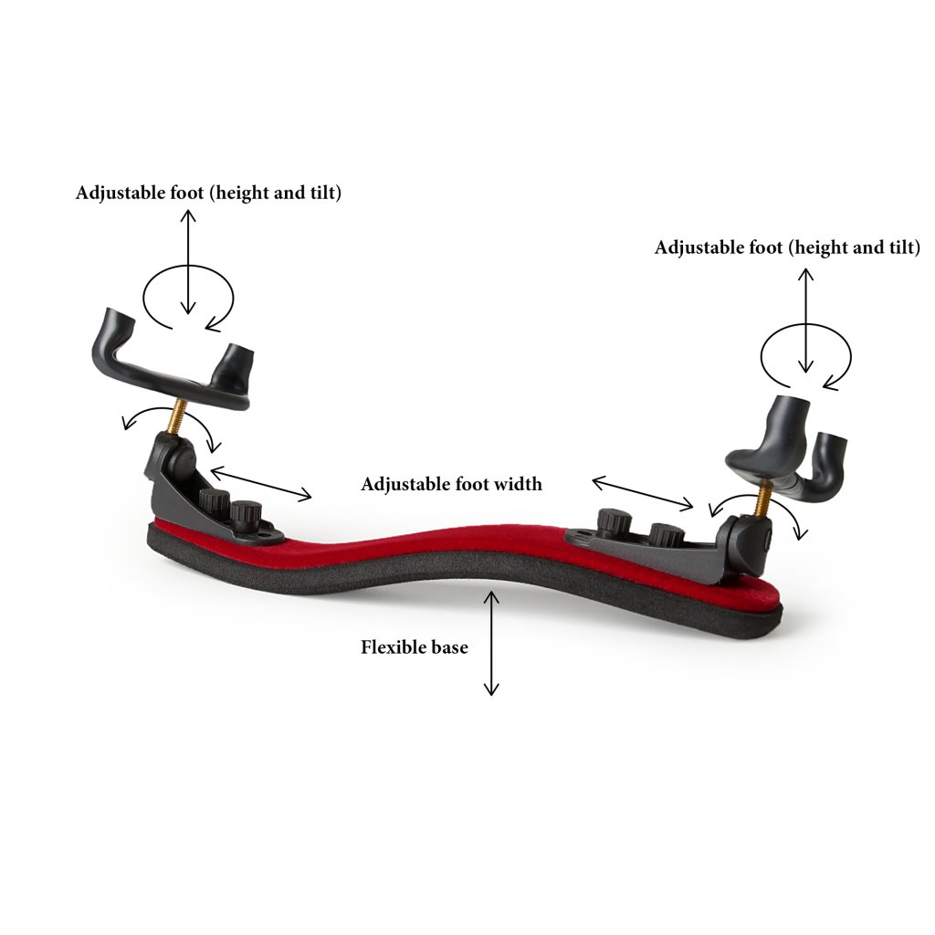 Opierka vyrobená z kvalitných materiálov vrátane odľahčenej kovovej základne. Jej vytvarovaním, nastavením výšky, šírky a sklonu sa dosiahne celoplošný kontakt opierky s plecom hráča, a tým sa zabezpečí prirodzené a správne držanie chrbtice. Antirezonančná povrchová úprava tlmí zvuk prenášaný z korpusu huslí na opierku a zároveň jej dáva elegantný vzhľad. Plecná opierka je vyrábaná v štyroch veľkostiach a dvoch farebných prevedeniach (čierna a bordová).
