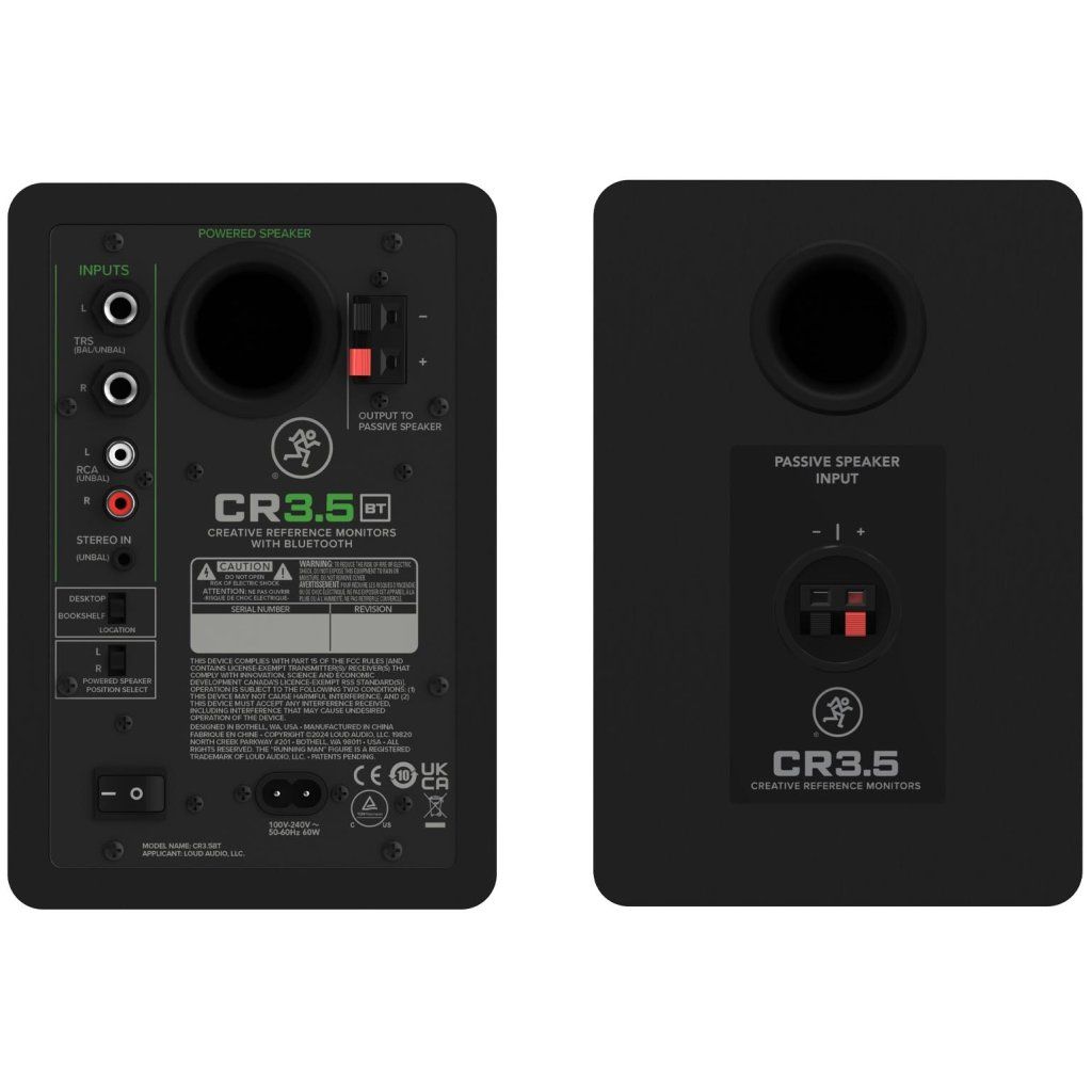 Mackie CR4.5 sa vždy predávajú v pároch, pričom jeden monitor slúži ako hlavný, obsahuje ovládacie prvky a zosilňovač, a druhý pripojíte pomocou dodaného reproduktorového kábla. Monitory majú symetrické vstupy TRS, asymetrické vstupy RCA a tiež stereo vstup na rýchle pripojenie k telefónu alebo notebooku.