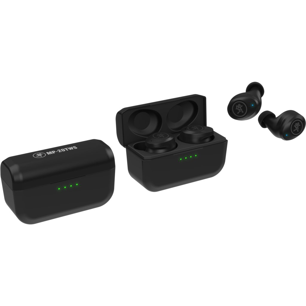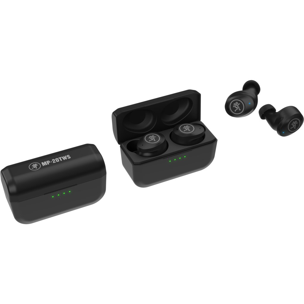 Bezdrôtové slúchadlá do uší Mackie MP-20TWS ponúkajú dva hybridné meniče (Knowlesova vyvážená armatúra + vlastné dynamické meniče), aktívne potlačenie šumu, Bluetooth 5.2, tri mikrofóny Knowles SiSonic na každej strane, vodotesnosť IPX4, dotykové ovládanie, kompatibilita so Siri a Google, 13 hodín výdrže batérie a ďalších viac ako 40 hodín používania s priloženým puzdrom na bezdrôtové nabíjanie, napájanie cez USB-C a priložené náušníky v troch veľkostiach.