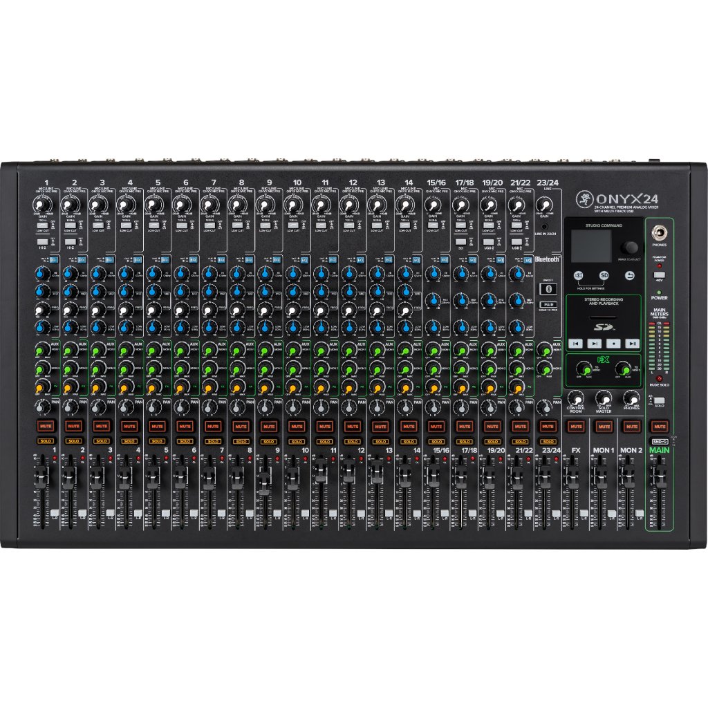 ONYX24 je 24-kanálový mixážny pult s možnosťou ukladať nahrávky na pamäťovú kartu SD alebo do softvéru DAW prostredníctvom kábla USB. Každý kanál je potom vybavený trojpásmovým ekvalizérom v britskom štýle inšpirovaným zvukom 60. a 70. rokov. Mixpult poskytuje mimoriadne čistý zvuk s nulovým oneskorením a nulovým skreslením.