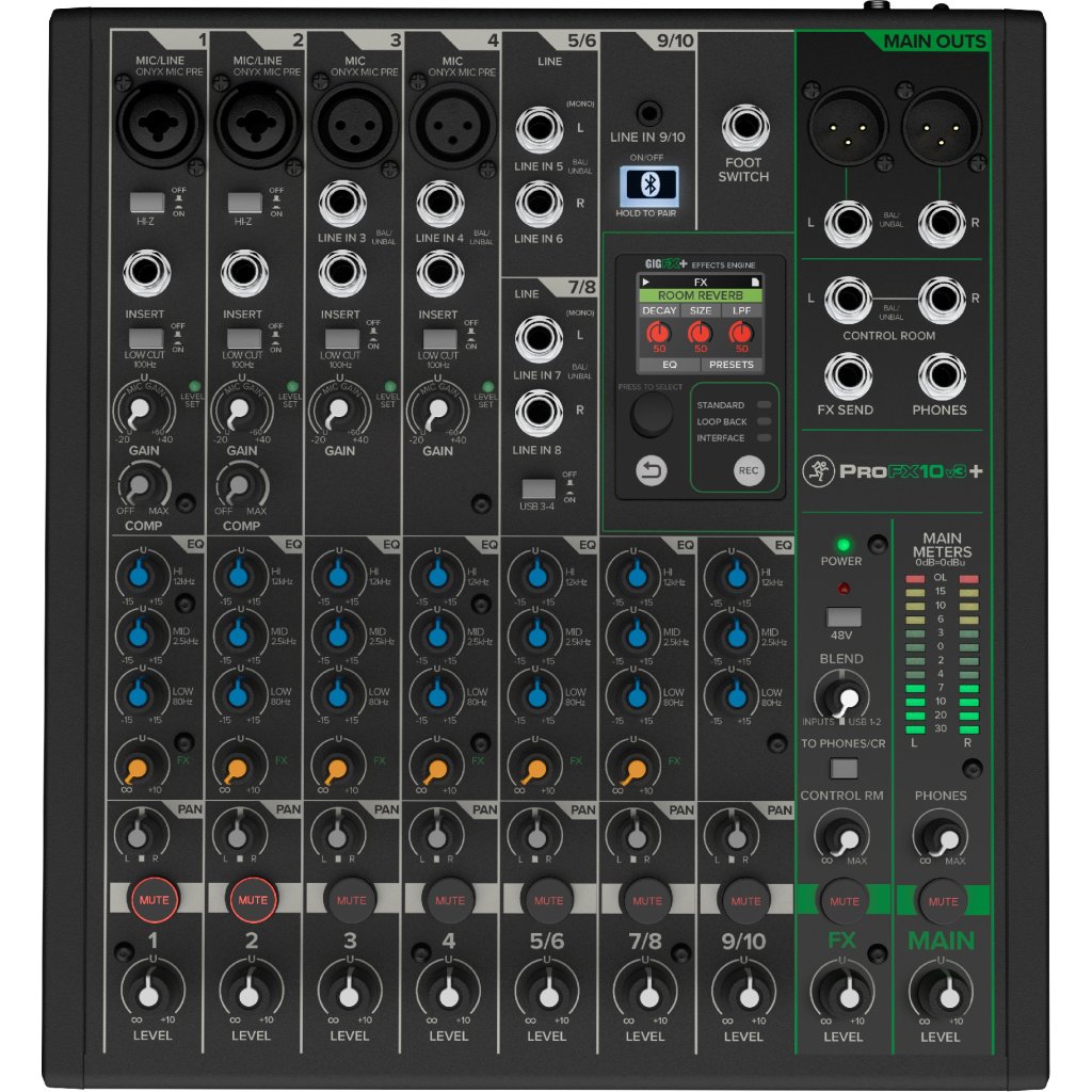 Analogový mixážní pult ProFX10v3+ od renomovaného výrobce Mackie pokračuje v nastoleném trendu a flexibilně se přizpůsobuje aktuálním trendům a požadavkům. Stejně jako starší verze bez pluska v názvu nabízí deset kanálů, třípásmový ekvalizér, kompresor, preampy Onyx s 60 dB gainu a prakticky nulovým šumem pro maximálně čistý přenos zvukového signálu, efektový procesor GigFX se 24 efekty (od reverbů po delay efekty) a nahrávání ve vynikající kvalitě díky 192 kHz/24 bit 2x 4 USB rozhraní.
