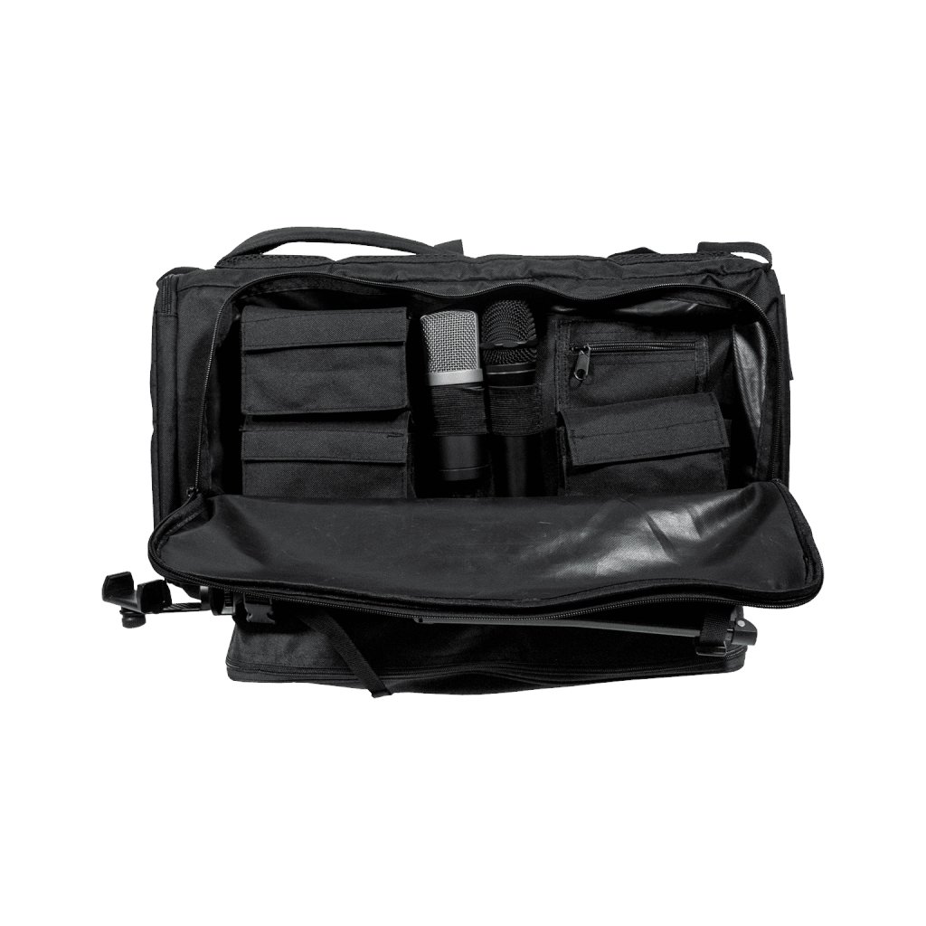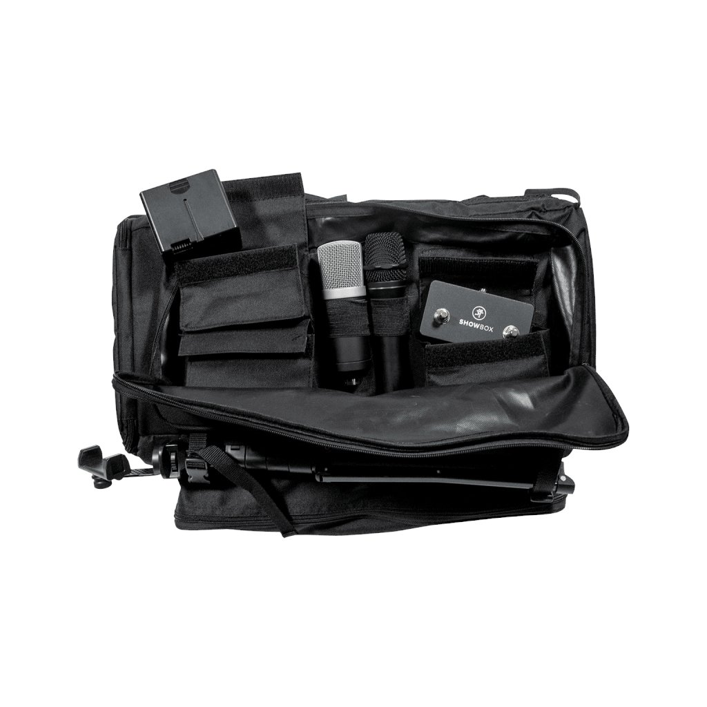 Prepravná taška vhodná pre Mackie ShowBox a príslušenstvo. Obsahuje polstrované popruhy (možno nosiť ako batoh) a bočné držadlo na jednoduchú manipuláciu.