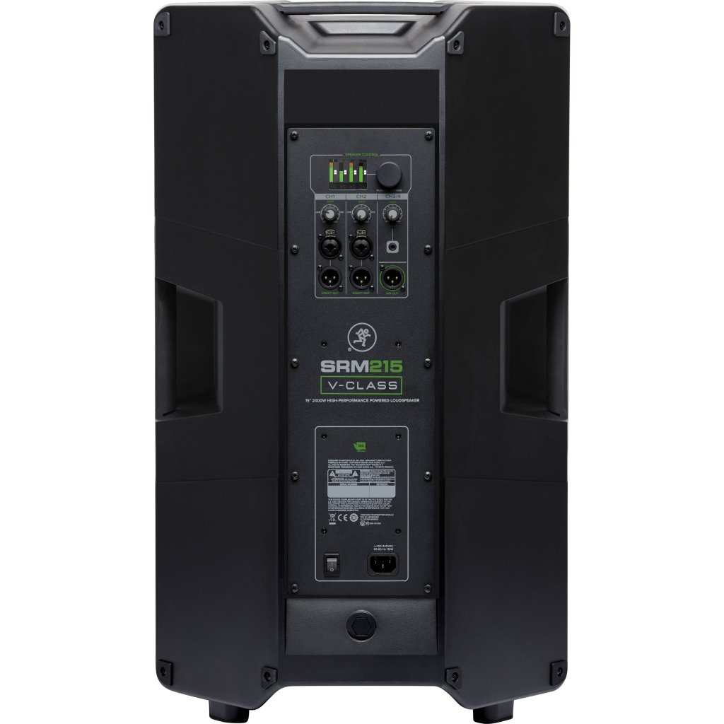 SRM215 V-Class je aktívny reproduktor s dvojkanálovým mixážnym pultom, ktorý je vďaka zosilňovaču triedy D schopný dodávať výkon až 2000 W RMS a je vybavený 15-palcovým wooferom a špeciálnym rohom pre čo najširší uhol vyžarovania. Vďaka inteligentnej správe basov je signál v reproduktore prispôsobený tak, aby sa dosiahla optimálna zvuková projekcia s čo najväčším rozptylom. Akustickej optimalizácii napomáha aj zabudovaný DSP so štyrmi zvukovými režimami (PA, DJ, Monitor a Solo) alebo samostatný ekvalizér pre každý kanál. Môžete si tiež uložiť až desať vlastných predvolieb.