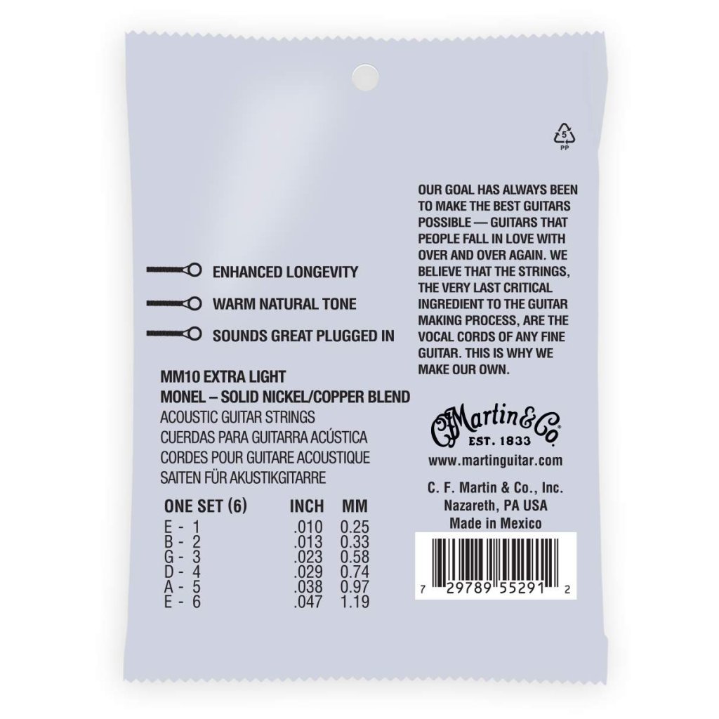 Spoločnosť Martin prichádza s vintage strunami, ktorých zvuk pripomína pôvodné nástroje z počiatku dvadsiateho storočia. Unikátna konštrukcia podporí prirodzený zvuk vašej akustickej gitary a vdýchne jej nový život. Precízne valcovité vinutie z Monel, čo je veľmi pevná zliatina niklu a medi, vylučuje prakticky akékoľvek poškodenie povrchu strún a následnú koróziu. Jasný a konzistentný tón tak zostane zachovaný po dlhú dobu. Ďalším špecifikom je upravená hrúbka strún A, D a H prinášajúca vyvážený pocit z hry a presnejšiu intonáciu.