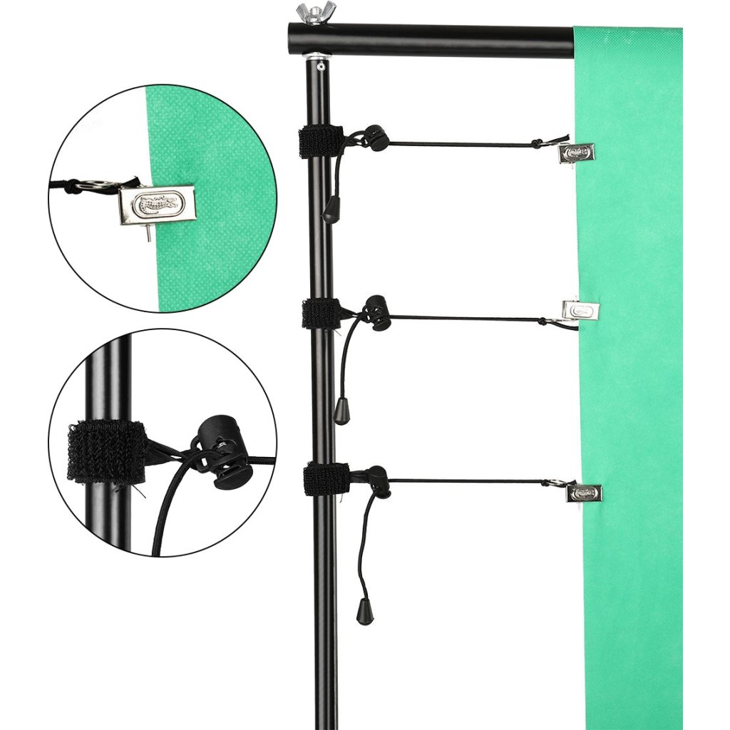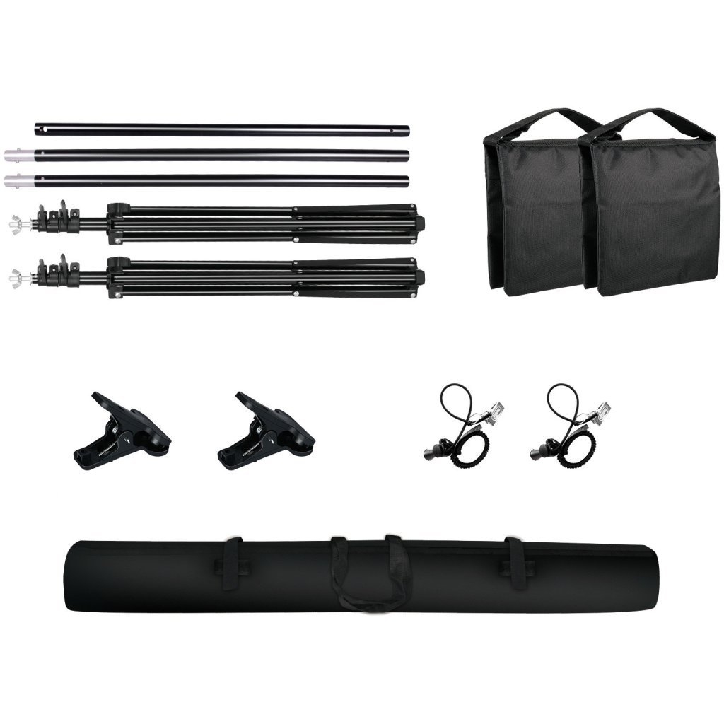 Všestranný a veľmi kompaktný dizajn s pozadím vhodným pre fotografické, filmové a televízne štúdiá. Konštrukcia je plne rozťahovateľná a rozmerovo nastaviteľná (výška/šírka), takže ju môžete vždy prispôsobiť svojim potrebám a preferenciám. Súprava obsahuje vysoko odolnú oceľovú konštrukciu, držiaky a svorky na pripevnenie textilnej plachty a prepravné kontajnery na pohodlnú a bezpečnú prepravu.