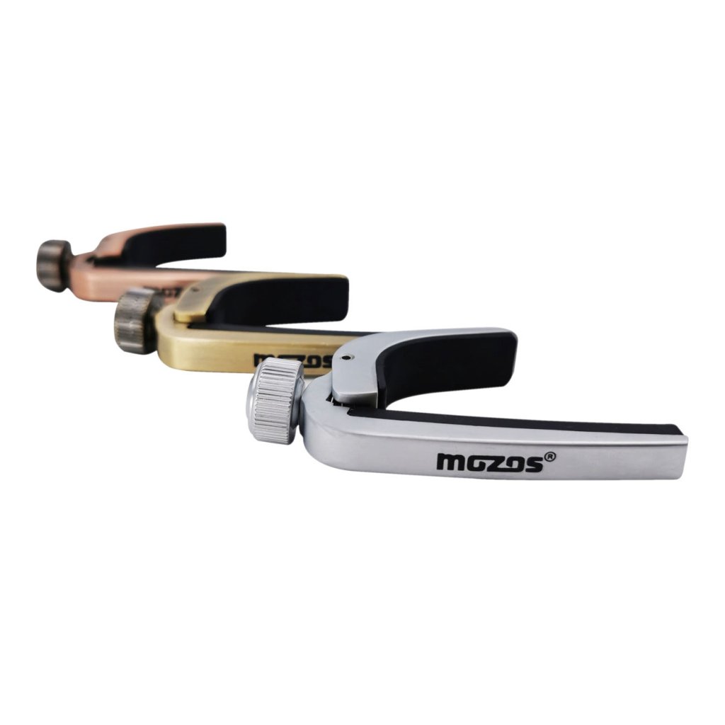 Kapodastr je jedným z najčastejšie používaných gitarových doplnkov. Tento pozinkovaný kapodastr Mozos vyniká jednoduchým použitím na každej gitare so zaobleným hmatníkom.