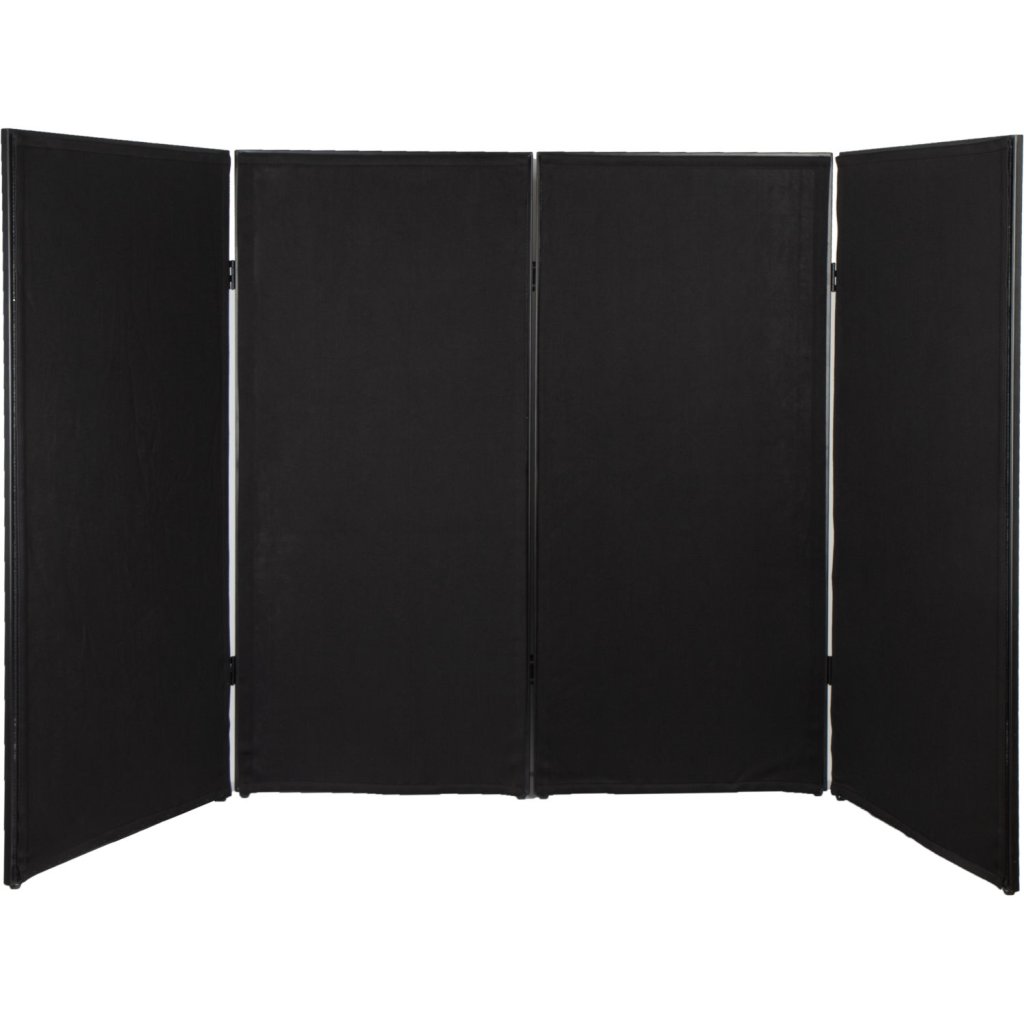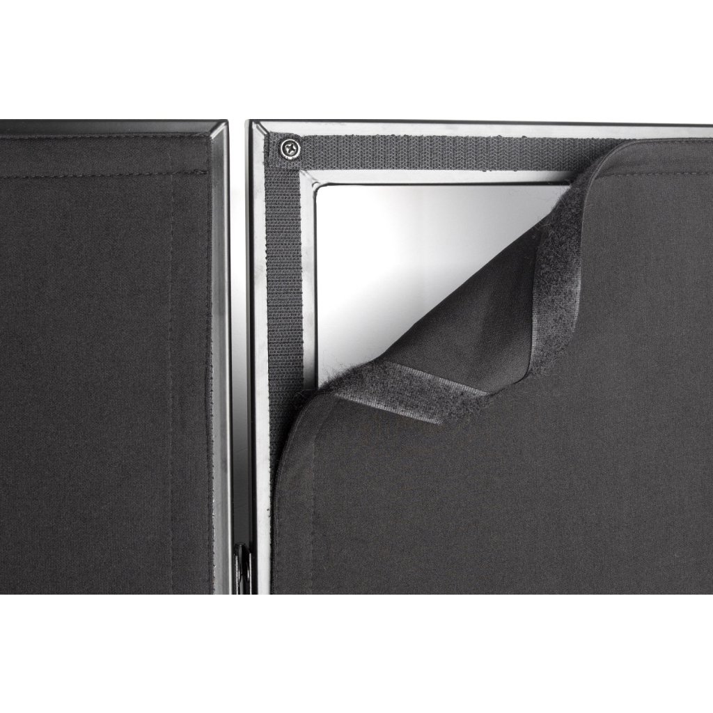 Mozos DJ-FC je praktický čtyřpanelový paraván pro DJ, který umožní vytvořit čisté, elegantní a profesionální pracovní stanoviště během pár minut. Každý panel má rozměry 50 × 112 cm a společně poskytují dostatečné zakrytí pro veškerou techniku, kabeláž a příslušenství, čímž dodávají DJ pultu moderní a reprezentativní vzhled.