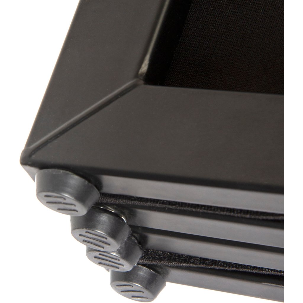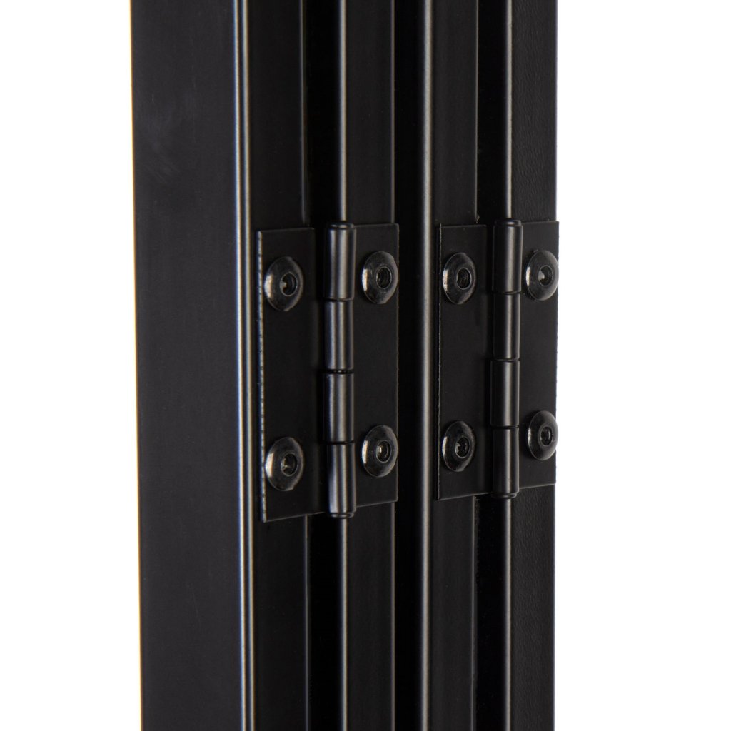 Konstrukce je vyrobena ze stabilní ocelové rámové konstrukce, která je potažena černou textilií. Díky ní působí paraván decentně a hodí se na jakýkoliv typ akce – od klubových večerů přes svatby až po firemní eventy či konference. Celková hmotnost je pouhých 9,5 kg, což usnadňuje přenos, rychlé složení i rozložení.