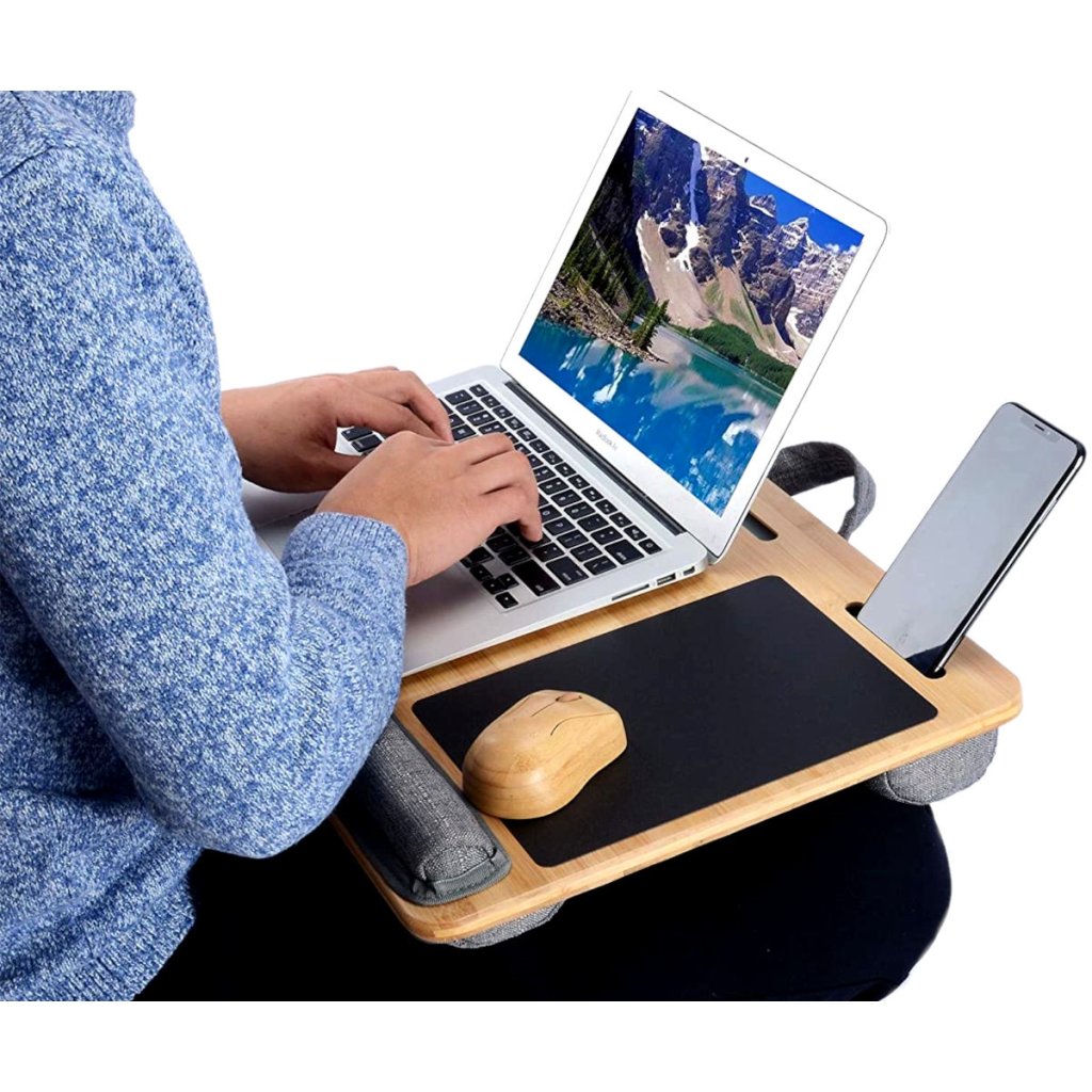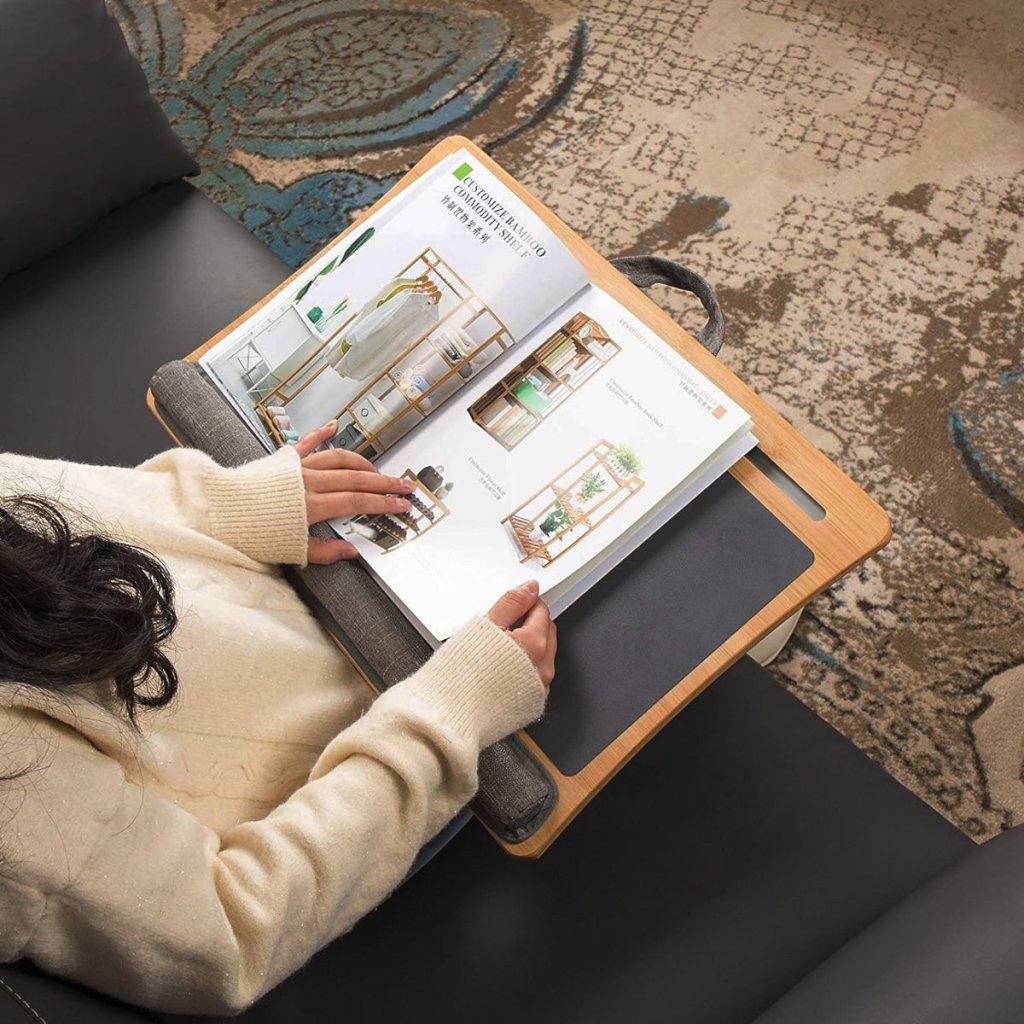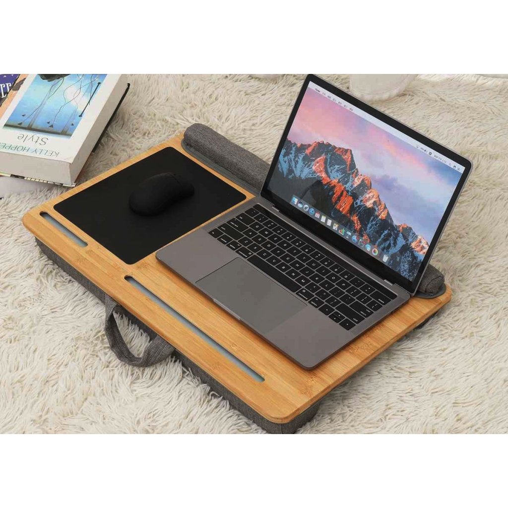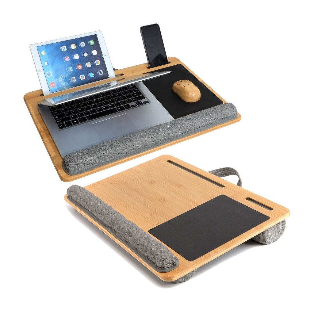 Univerzálna bambusová pracovná podložka vhodná pre módnych návrhárov, grafikov a ďalších kreatívcov, ktorí potrebujú maximálne pohodlie pri práci. Zadná strana má mäkké polstrovanie s protišmykovým povrchom a rovnaké polstrovanie nájdete aj v prednej časti pre lakte. Predná strana obsahuje aj dva výrezy na tablet alebo smartfón a protišmykovú podložku pod myš.