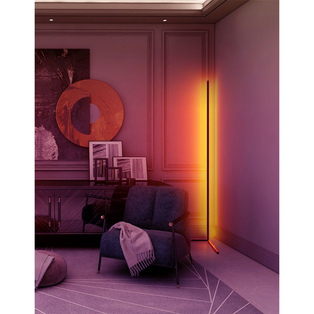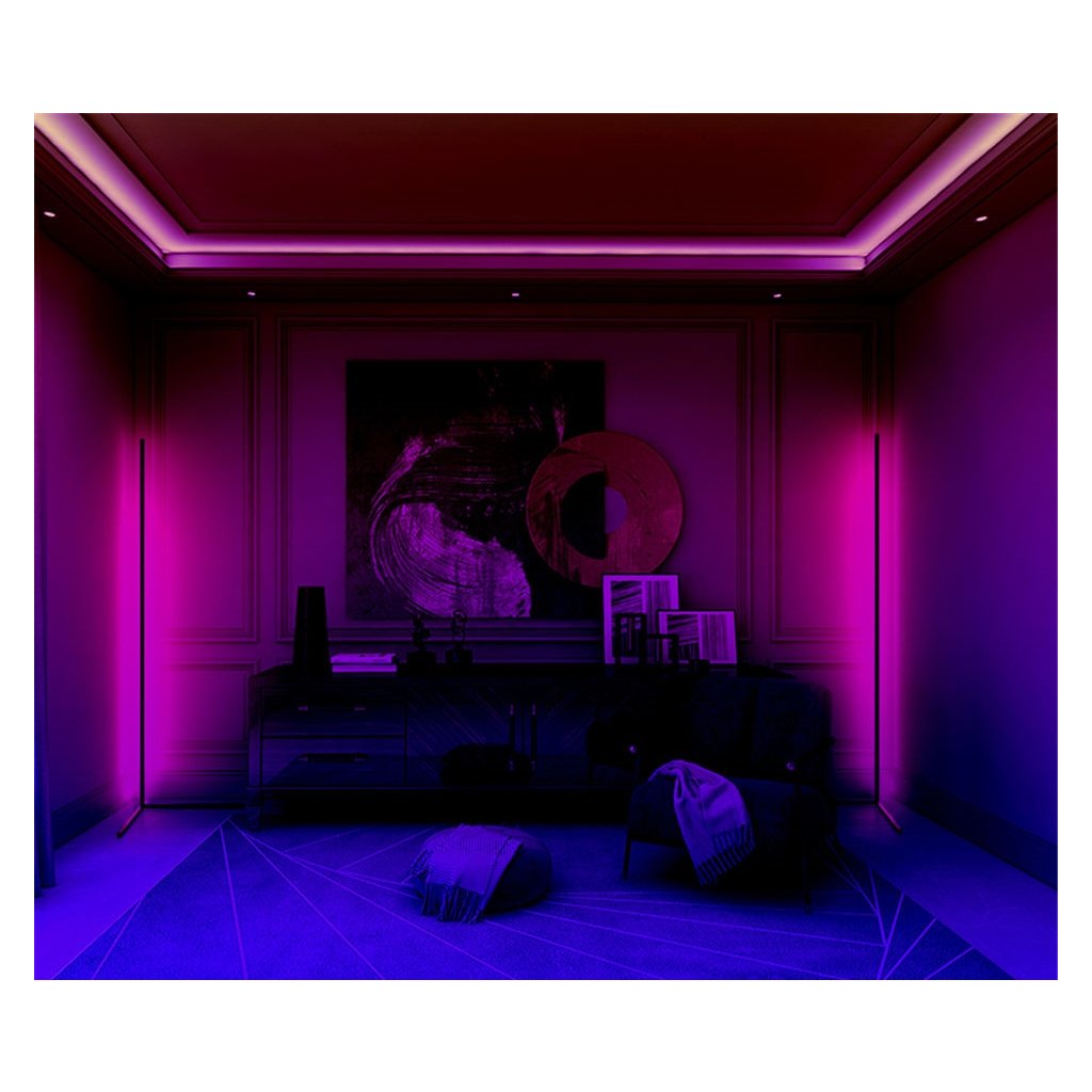 Minimalistická rohová lampa s pásom RGB LED dodá vášmu nahrávaciemu štúdiu, kancelárii alebo obývačke dokonalú atmosféru na nahrávanie nových skladieb, sledovanie filmov alebo hranie hier. Lampa má 84 LED diód a možno ju ovládať pomocou diaľkového ovládača, ktorý ponúka stmievanie, stmievač a ďalšie režimy svietenia.