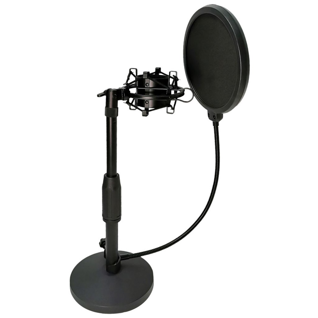 Stolový mikrofónový stojan s robustnou základňou, polstrovaným držiakom a vysokoúčinným pop filtrom. Toto nastavenie je vhodné pre podcasterov, vysielateľov, youtuberov a hudobných producentov. Stojan je vybavený teleskopickou tyčou, zatiaľ čo polstrovaný držiak je vhodný pre štúdiové mikrofóny s priemerom tela od 43 do 47 mm. Pop filter zabezpečuje odstránenie rušivých zvukových faktorov a ploských spoluhlások. Táto súprava by rozhodne nemala chýbať vo výbave žiadnej kreatívnej duše, ktorá chce zaznamenať svoje nápady v čo najlepšej kvalite a posunúť svoju prácu na vyššiu úroveň.
