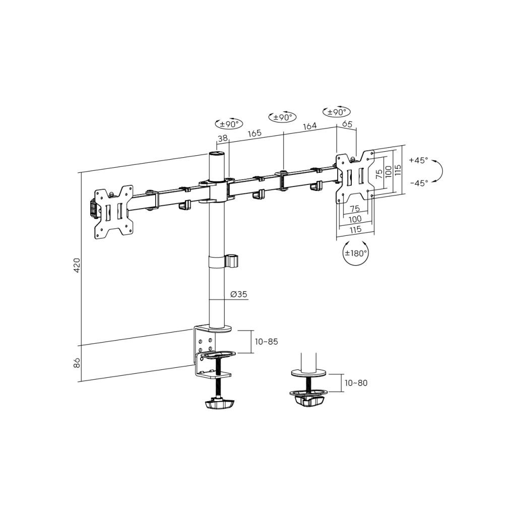 Model Mozos MS3 v sebe spája funkčnosť, ergonómiu a moderný dizajn. Je určený pre 2 monitory s uhlopriečkou 17 - 32" a umožňuje úplnú voľnosť pri nastavovaní obrazoviek, čím zvyšuje pohodlie pri práci a organizáciu priestoru. Vďaka pevnej konštrukcii a inovatívnym funkciám je ideálnou voľbou pre kancelárske a domáce pracoviská.