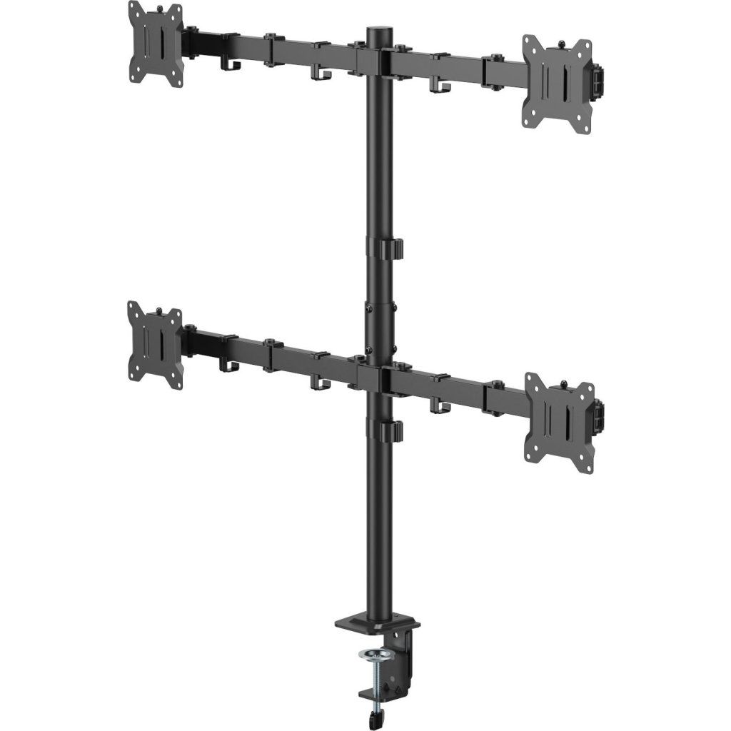 Mozos MS04 je praktický a cenovo dostupný držiak na štyri monitory, ktorý ponúka ideálne riešenie pre každého, kto pracuje s viacerými obrazovkami súčasne. Vďaka robustnej konštrukcii z ocele a odolného plastu poskytuje vysokú stabilitu aj pri plnom zaťažení, pričom unesie až 4 monitory s uhlopriečkou 17" až 32" s maximálnou nosnosťou 10 kg na každý displej. Je tak perfektnou voľbou pre kancelárie, domáce pracoviská, obchodovanie alebo monitorovanie.