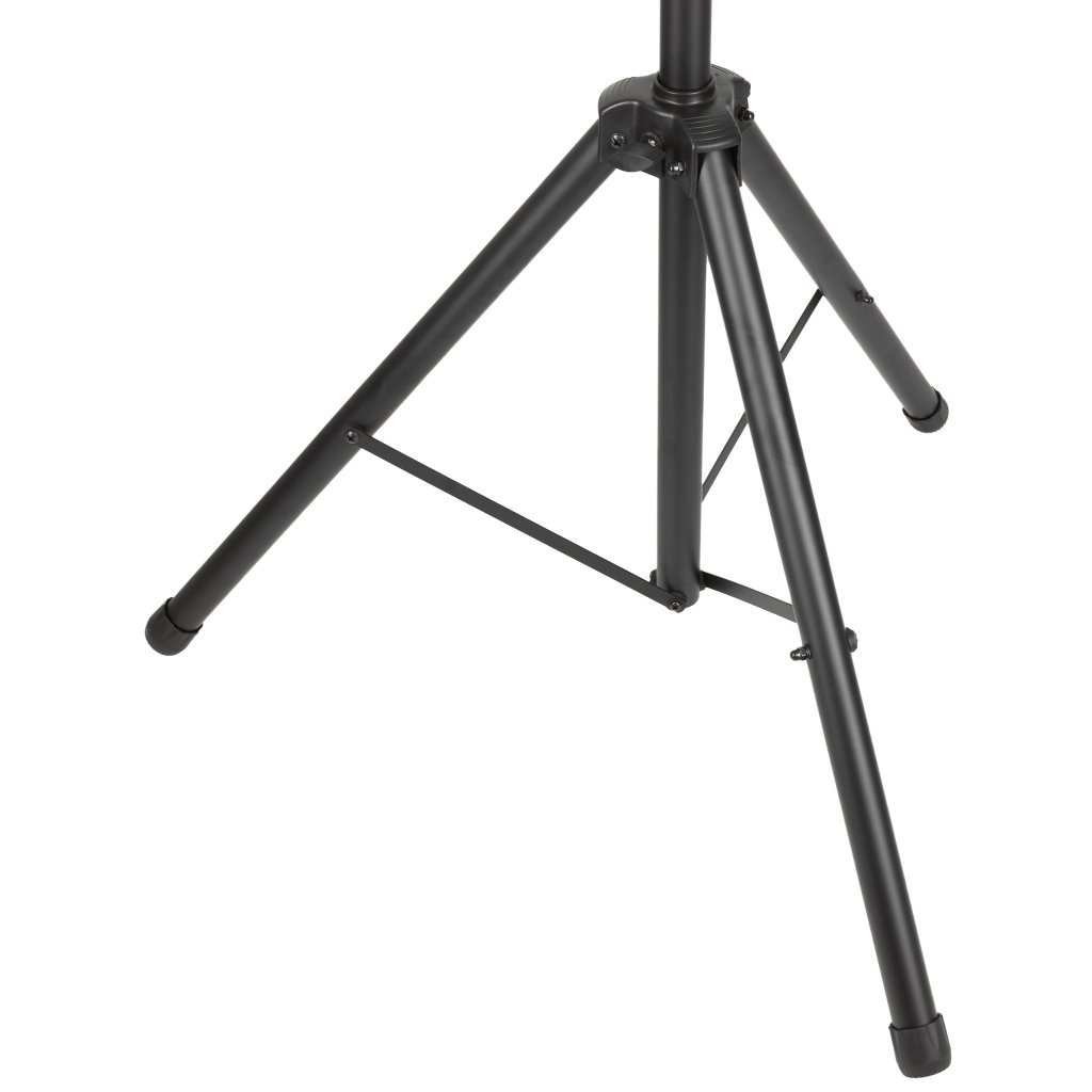 Konštrukcia stojana je vyrobená z pevnej ľahkej ocele, statív má gumové zakončenie s antivibračnou funkciou. Kovová závlačka zaisťuje maximálnu bezpečnosť. Stojan unesie hmotnosť až 40 kg.