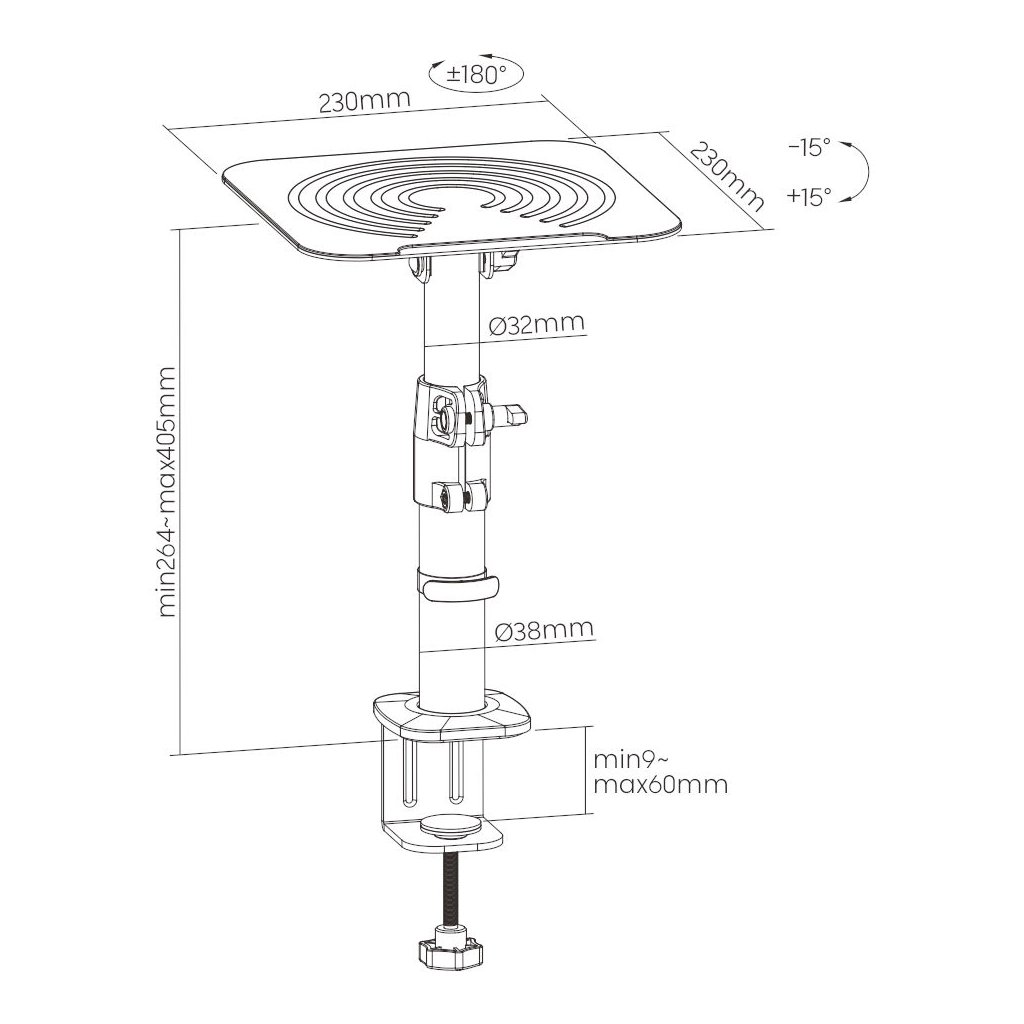 Robustný výškovo nastaviteľný stojan vhodný pre štúdiové monitory a reproduktory. Je vyrobený z odolnej ocele a má závitovú skrutku na pripevnenie k doske stola vysokej až 62 mm. Na stojan môžete namontovať väčšinu monitorov na trhu, takže je vhodný do nahrávacích štúdií, ale oceníte ho aj v domácom kine, skúšobni alebo kancelárii.