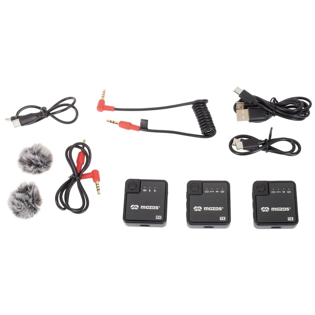 Bezdrôtový reportážny set (dva vysielače a prijímač) s kompatibilitou s USB-C, DSLR (3,5 mm jack), kvalitný zvuk, vysoká citlivosť, zabudovaný DSP čip, dosah až 40 metrov a napájanie zo zabudovanej batérie (300 mAh). Kompatibilita so systémami Android, iOS a podpora zrkadloviek DSLR. V balení káble (mini-jack 3,5 mm TRS, USB, adaptér lightning), obal a ochrana proti vetru.
