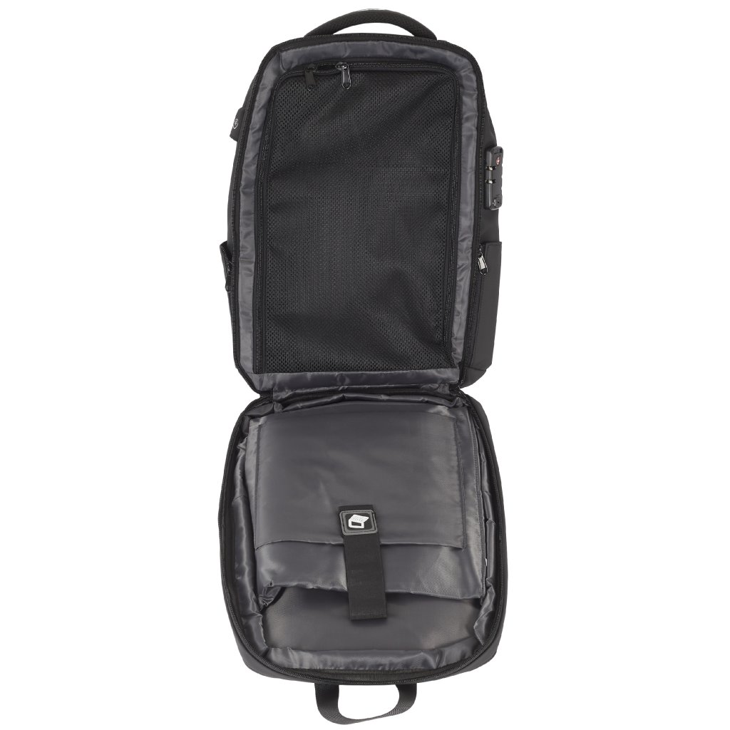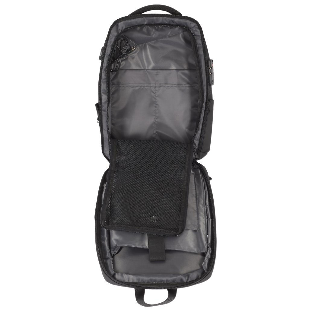 Mozos PM37 je všestranný viacúčelový batoh s vodotesnou konštrukciou, množstvom vreciek, nastaviteľnou hĺbkou vnútorného priestoru, portom USB a ochranou TSA. Do batohu bezpečne uložíte notebooky so šírkou až 15,6 palca. Vonkajší plášť je vyrobený z plastových materiálov (PC, ABS), vnútro je vyplnené mäkkou penou EVA, ktorá spoľahlivo tlmí nárazy. Doklady a iné dôležité dokumenty sú uložené v špeciálnom vnútornom vrecku.