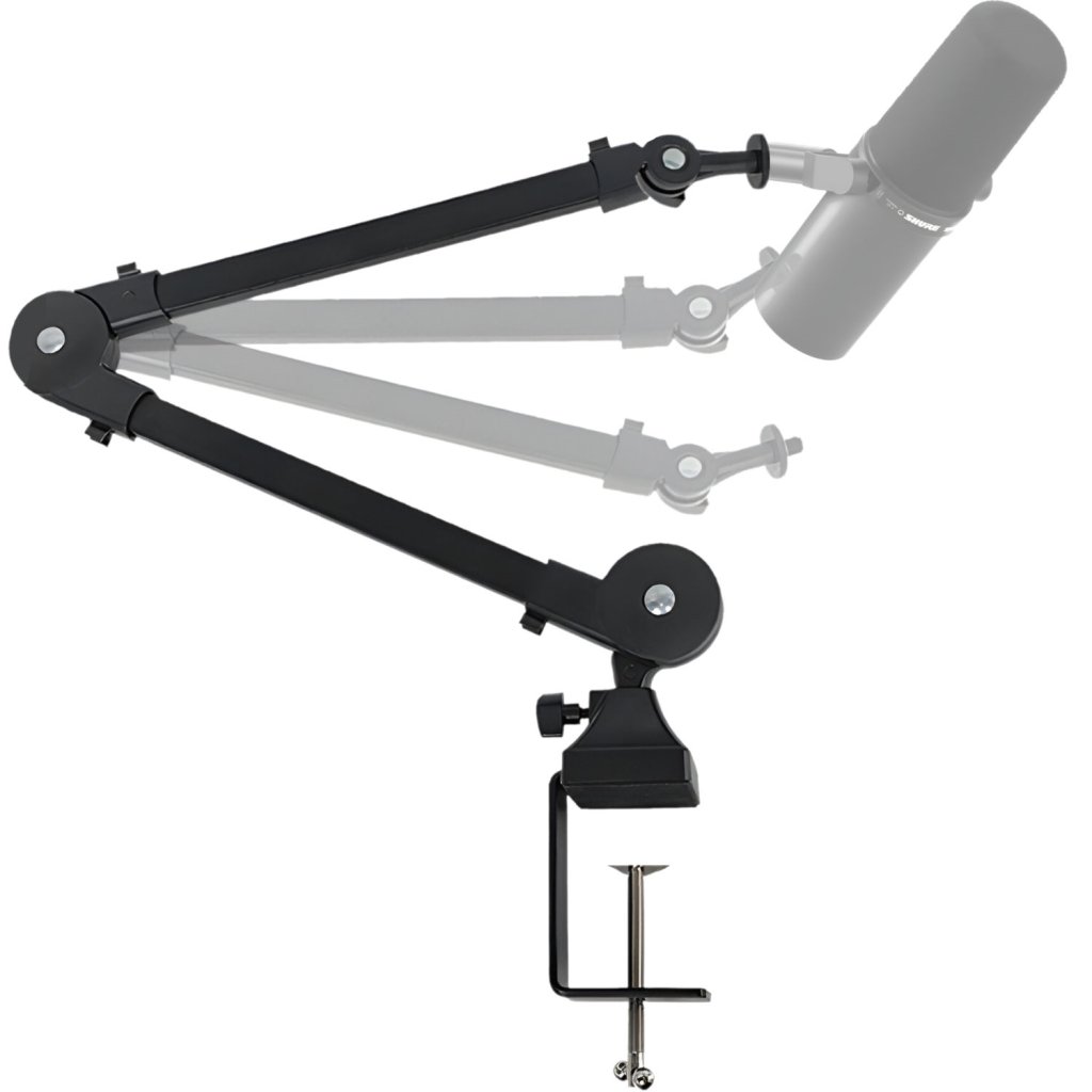 Stolný mikrofónový stojan Mozos SB42 s kovovou konštrukciou ponúka nosnosť až 2 kg, t. j. možnosť pracovať s profesionálnymi mikrofónmi, upevnenie na dosku stola so šírkou až 7 cm, flexibilitu ramena s dĺžkou 40 + 40 cm a širokú sadu príslušenstva (štyri popruhy na suchý zips, držiak na mikrofón, držiak na telefón).