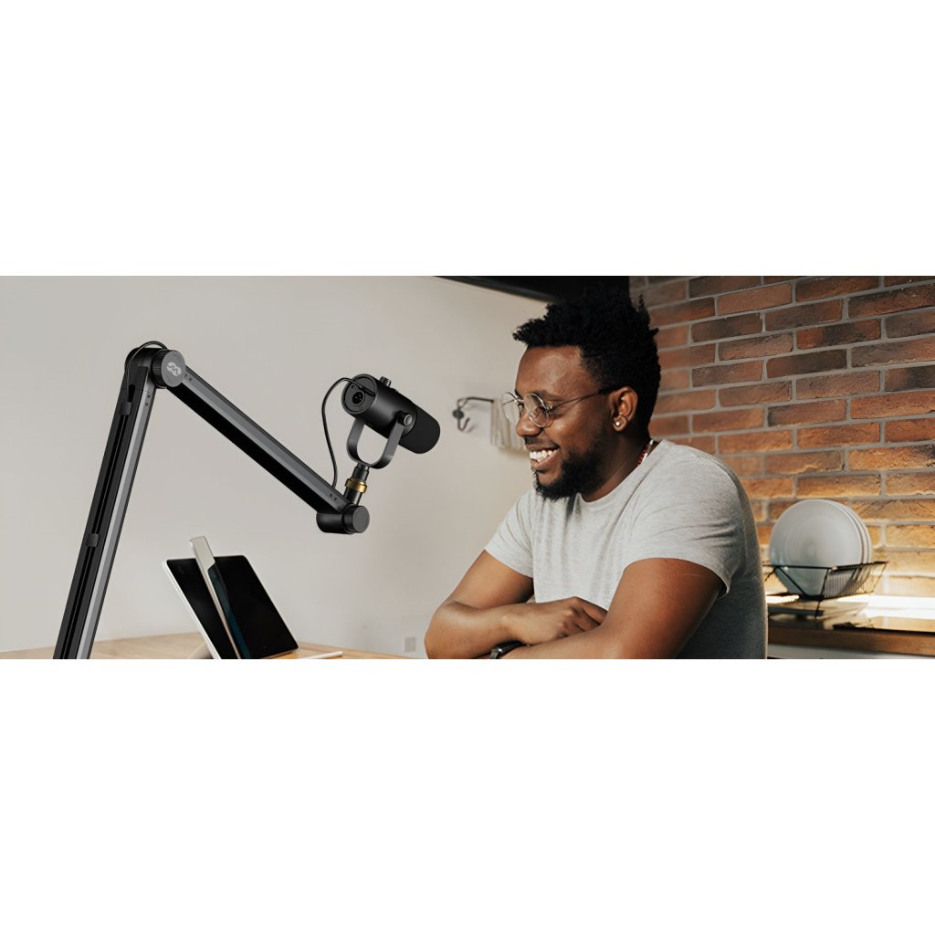 Rameno poskytuje širokú kompatibilitu s mnohými mikrofónmi. Vôbec nezáleží na tom, či máte základný mikrofón alebo profesionálny štúdiový mikrofón. Kompatibilita s oboma štandardnými závitmi zaručuje rýchlu a jednoduchú inštaláciu. Silikónové upínacie podložky chránia váš stôl pred poškriabaním a minimalizujú vibrácie prenášané zo stola.