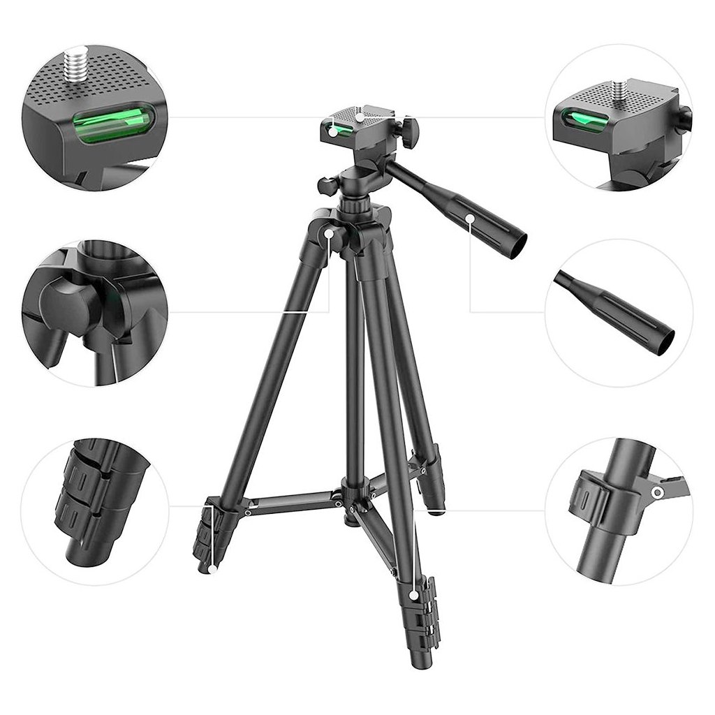 Profesionálny statív vhodný pre smartfóny a fotoaparáty s nastaviteľnou výškou, skvelými antivibračnými vlastnosťami, robustnou pákou na jednoduché nastavenie sklonu a skladacou konštrukciou v kompaktnej veľkosti na jednoduchú prepravu. Súčasťou balenia je držiak na smartfón a fotoaparát a puzdro na prenášanie.