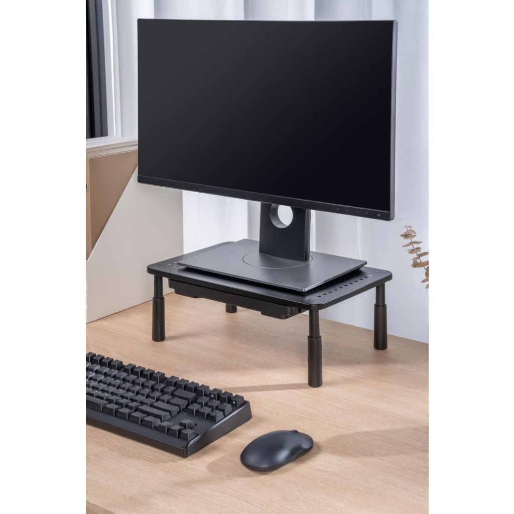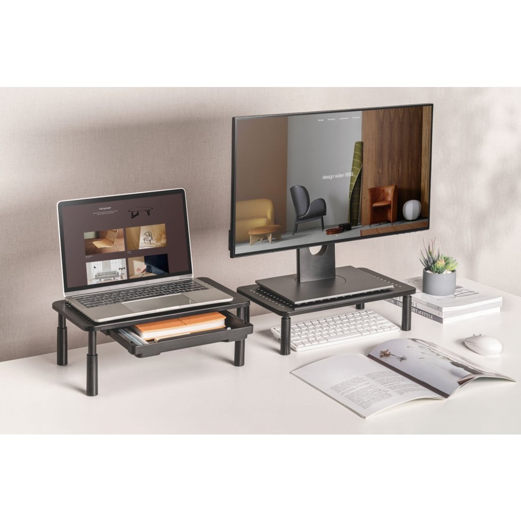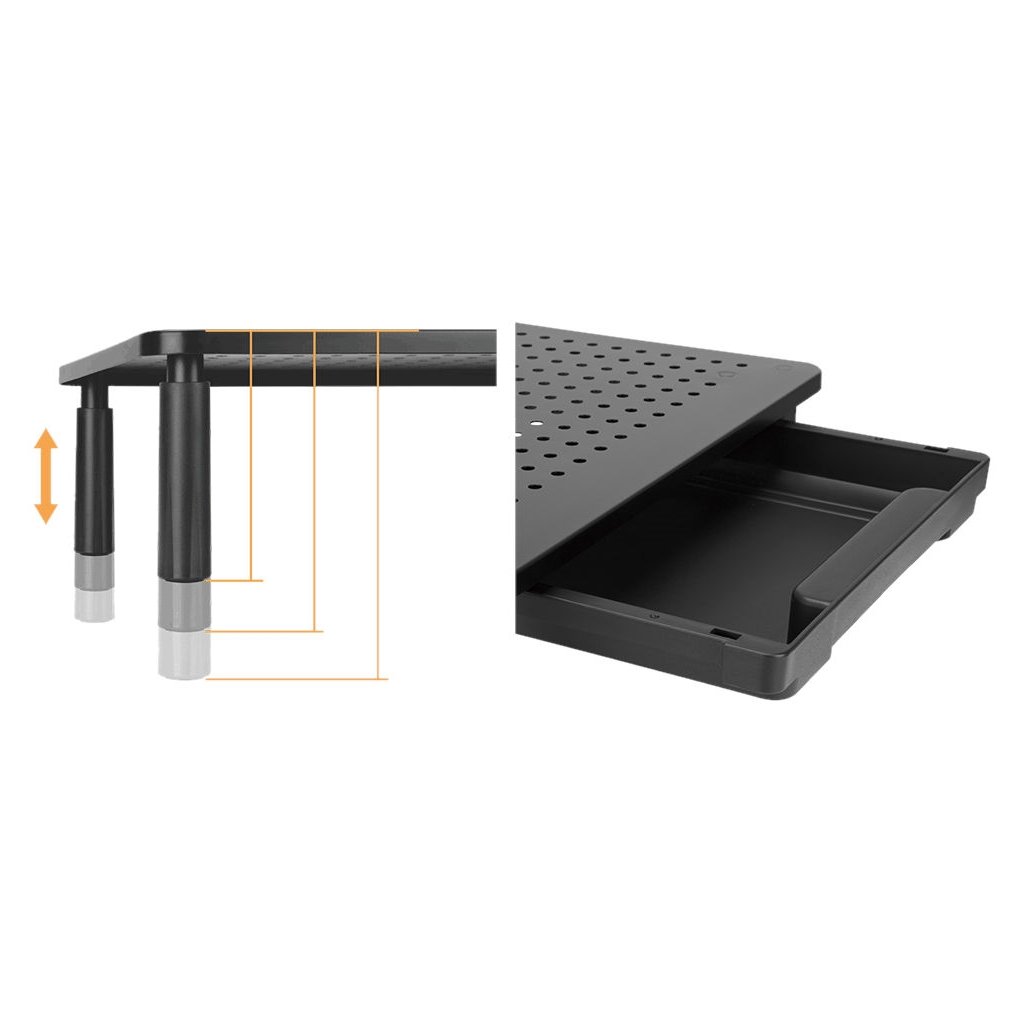 > Ergonómia na prvom mieste - zdvihnutím monitora alebo notebooku do optimálnej výšky sa znižuje zaťaženie krčnej chrbtice a zvyšuje sa celkové pohodlie pri práci, výška je nastaviteľná v troch stupňoch