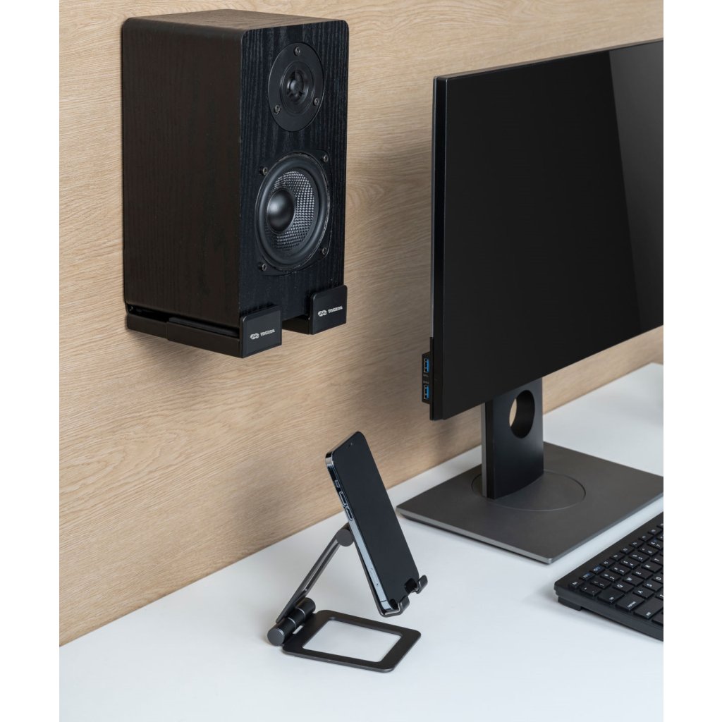 Štýlový nástenný držiak vhodný pre štúdiové monitory, soundbary a iné zvukové zariadenia. Dvojica držiakov je vyrobená z kombinácie plastu ABS a ocele a je tiež vybavená výsuvným mechanizmom na čo najflexibilnejšie použitie. O skvelé antivibračné vlastnosti sa potom starajú pogumované prvky vo vnútornej časti držiaka.
