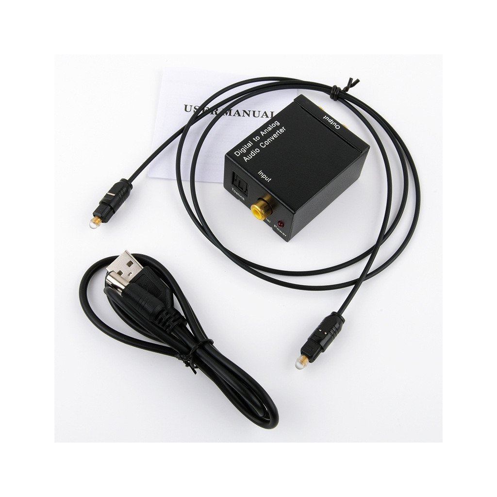 Vysoko výkonný prevodník digitálneho signálu (Toslink/SPDIF) na analógový vhodný na profesionálne aj súkromné použitie. Prevodník umožňuje spárovať televízor, hernú konzolu alebo DVD prehrávač so zosilňovačom alebo aktívnym reproduktorom. Súčasťou balenia je optický kábel a napájací kábel s USB. Na napájanie možno použiť akýkoľvek 5V DC napájací adaptér.