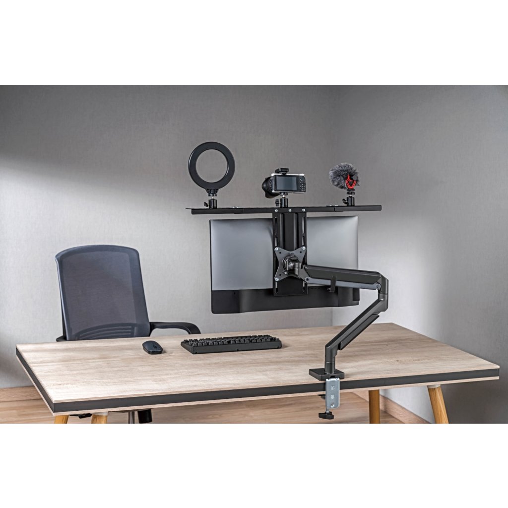 Mozos VS1-L je praktická policová jednotka s funkčným dizajnom na inštaláciu rôzneho príslušenstva nad monitor LCD. Tento dizajn pomáha udržiavať pracovný priestor uprataný a organizovaný a poskytuje pohodlie pri videokonferenciách a živom vysielaní. Je ideálna pre používateľov, ktorí potrebujú ďalší priestor na montáž kamier, mikrofónov, osvetlenia a iného príslušenstva.