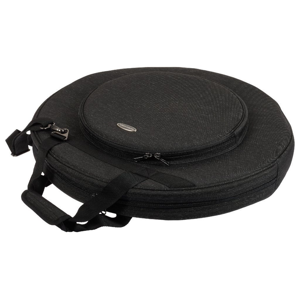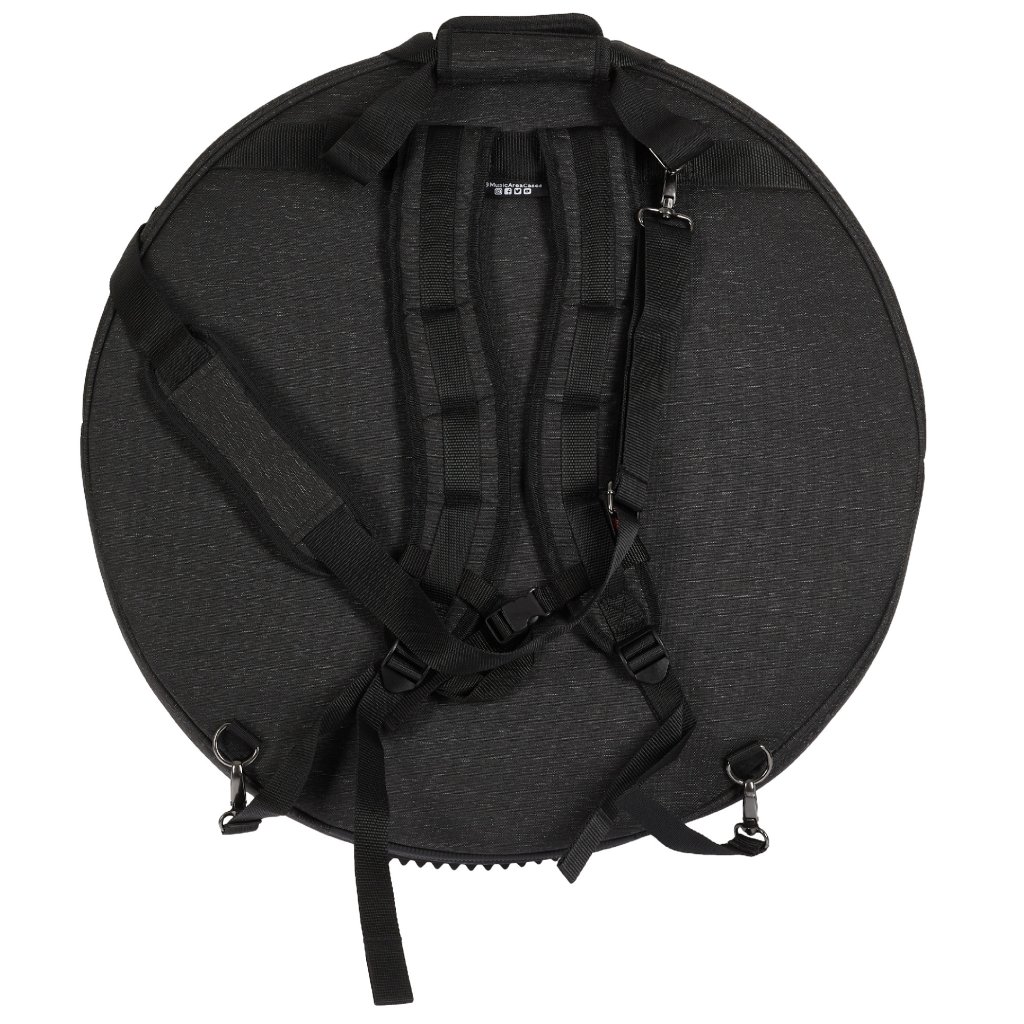 Toto puzdro má až 25 mm hrubé polstrovanie z vrstvenej peny EPE a polyuretánu, ktoré je veľmi ľahké a spoľahlivo chráni činely pred nárazmi. Vonkajšia strana je vyrobená z nepremokavého polyesteru 900D, ktorý je odolný voči roztrhnutiu alebo opotrebovaniu, zatiaľ čo vnútorná strana je pokrytá vrstvou mäkkého plyšu. Na spodnej strane nájdete aj ochrannú vrstvu z PVC, ktorá chráni kryt pred opotrebovaním. Pre maximálne pohodlie na cestách je obal vybavený polstrovanými ramennými popruhmi a rukoväťou na hornej strane. Na uloženie príslušenstva je k dispozícii priestranné vonkajšie vrecko. Určite sa nemusíte obávať ani o kvalitu zipsov, pretože sú pravidelne testované výrobcom a bez problémov zvládnu viac ako 8 000 rozopnutí a zapnutí.