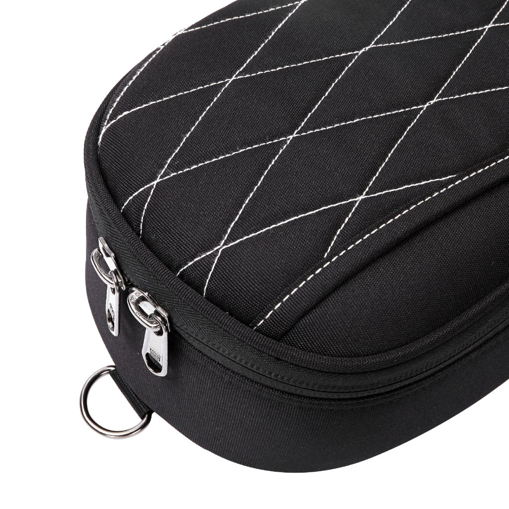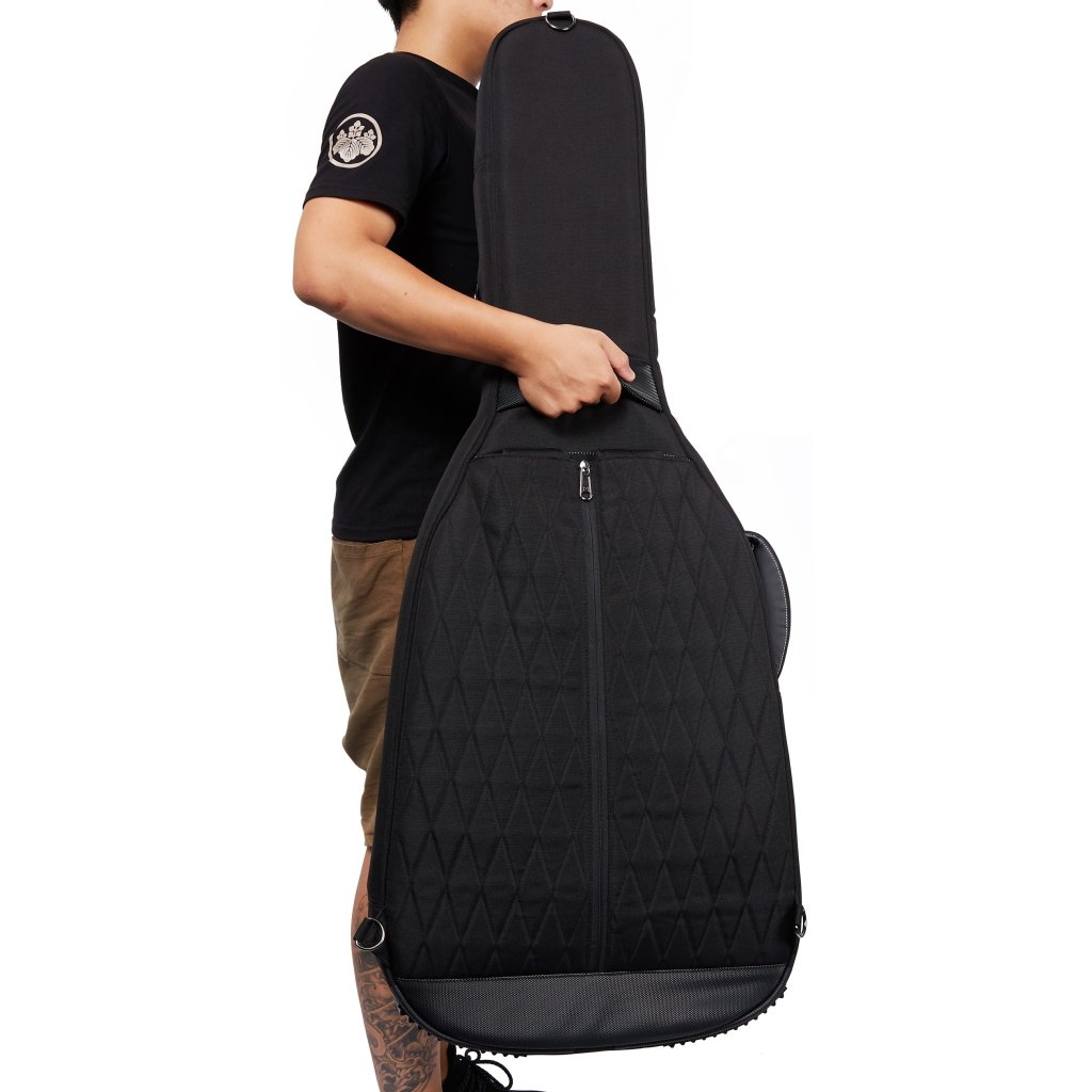 Tieto luxusné puzdrá série RB30 majú až 30 mm hrubé, mimoriadne pevné polstrovanie z laminovanej peny EPE a polyuretánu, ktoré je mimoriadne ľahké a spoľahlivo chráni váš nástroj pred nárazmi. Vonkajšia strana je vyrobená z nepremokavého a pevného polyesteru 900D, ktorý je odolný voči roztrhnutiu alebo opotrebovaniu, zatiaľ čo vnútorná strana je pokrytá hrubou vrstvou mäkkého plyšu a má vodoodolnú úpravu. Na spodnej strane nájdete pevnú PVC výstuhu, ktorá chráni nielen nástroj, ale aj samotné puzdro pred opotrebovaním. Tento model je vybavený aj odnímateľným ochranným polstrovaním pre rolku popruhu a zosilnenou, nastaviteľnou opierkou krku so systémom zapínania. Určite sa nemusíte obávať ani kvality zipsov, pretože sú výrobcom pravidelne testované a bez problémov zvládnu viac ako 8 000 rozopnutí a zapnutí.