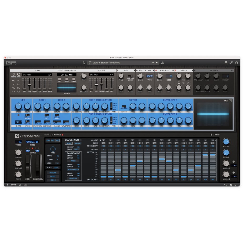 Okrem štandardných SW funkcií získate aj exkluzívny virtuálny nástroj GForce Bass Station, presnú repliku klasického monofónneho syntetizátora Novation z 90. rokov s množstvom úplne nových funkcií. Teraz budete mať k dispozícii 16 hlasov, viac ako 300 presetov, vstavaný arpeggiátor a sekvencer, efekty a mnoho ďalšieho. GForce Bass Station prináša obrovskú všestrannosť a kreatívny potenciál. K dispozícii ako zásuvný modul AU, AAX, VST a VST3 alebo samostatne pre PC a Mac.