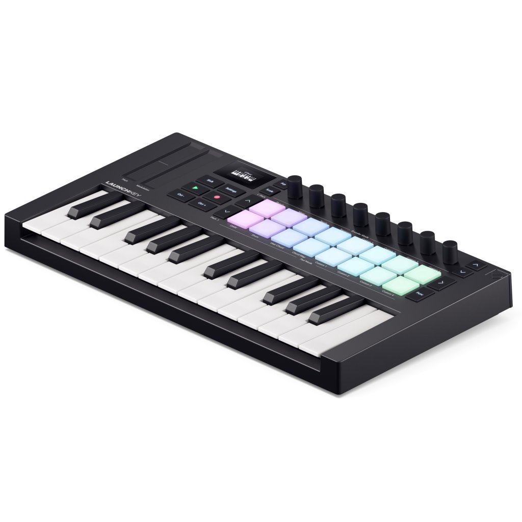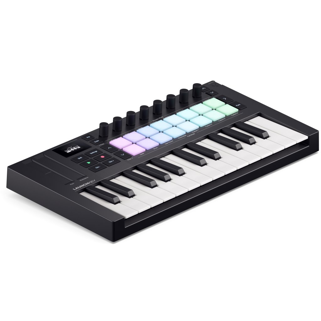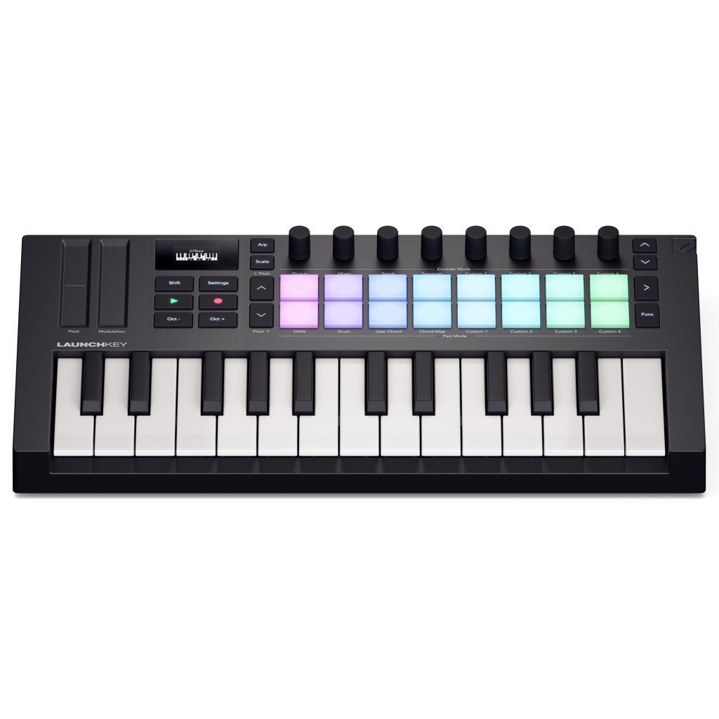 Novation Launchkey Mini 25 je výkonný DAW kontroler se synth-type mini klaviaturou, osmi kontinuálními enkodéry a 16 tlakově citlivými pady pro finger drumming a spouštění klipů. Kontroler také obsahuje kreativní režimy Chord a Scale, které spolupracují s OLED displejem, abyste se snadno drželi tóniny.
