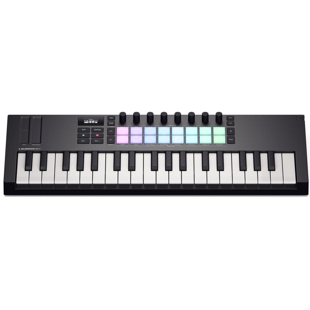 Novation Launchkey Mini 37 je výkonný DAW kontroler se synth-type mini klaviaturou, osmi kontinuálními enkodéry a 16 tlakově citlivými pady pro finger drumming a spouštění klipů. Kontroler také obsahuje kreativní režimy Chord a Scale, které spolupracují s OLED displejem, abyste se snadno drželi tóniny.
