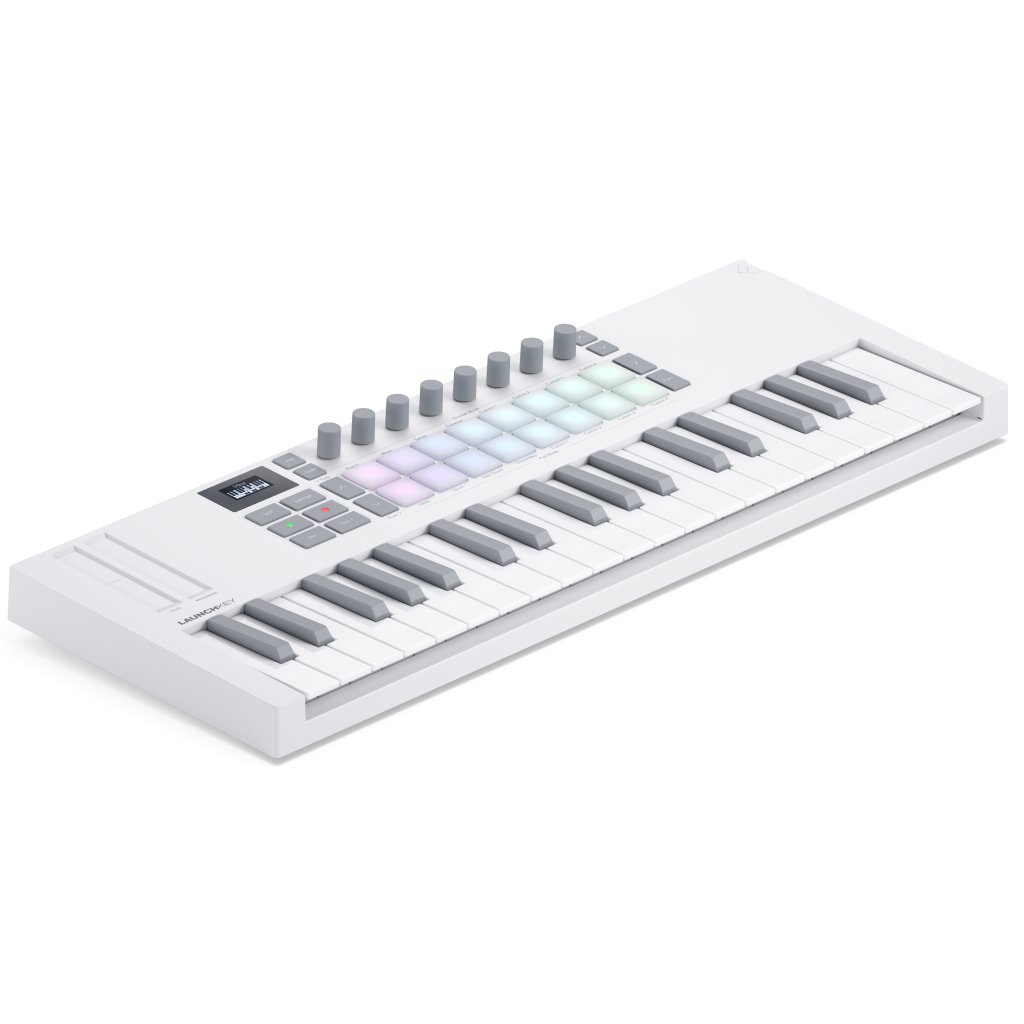 Novation Launchkey Mini 37 je výkonný DAW kontroler se synth-type mini klaviaturou, osmi kontinuálními enkodéry a 16 tlakově citlivými pady pro finger drumming a spouštění klipů. Kontroler také obsahuje kreativní režimy Chord a Scale, které spolupracují s OLED displejem, abyste se snadno drželi tóniny.