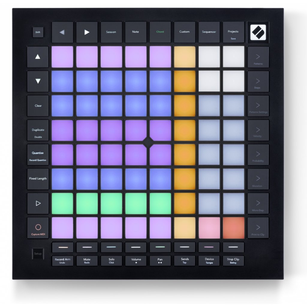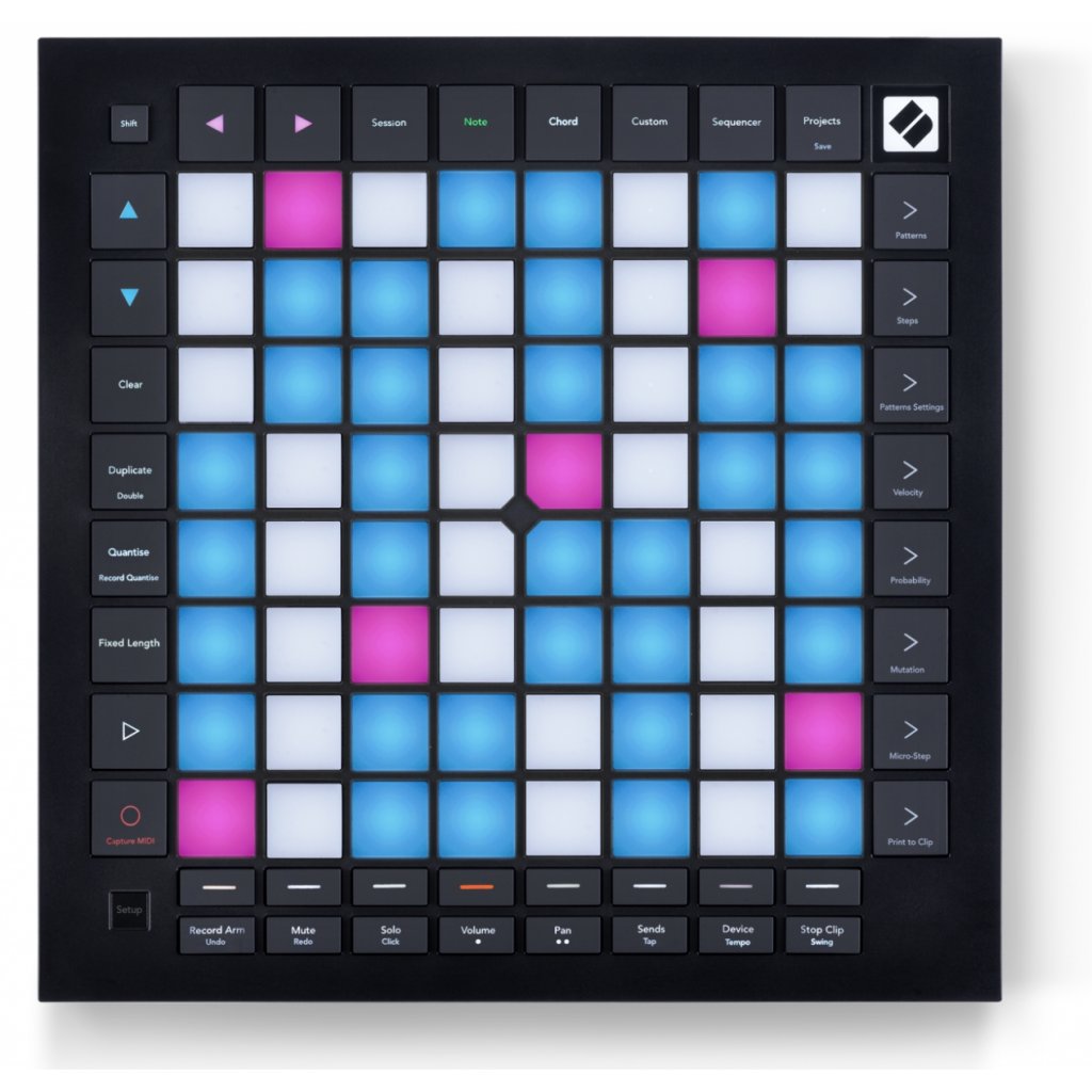 Na mriežke môžete jednoducho hrať noty, stupnice a akordy, pretože Launchpad Pro rozsvieti svoje pady v melodickom rozložení. Pri stláčaní padu budete mať spätnú väzbu z RGB LED diód; ak ste v režime Standalone, môžete mriežku používať na ovládanie softvérových alebo hardvérových nástrojov.